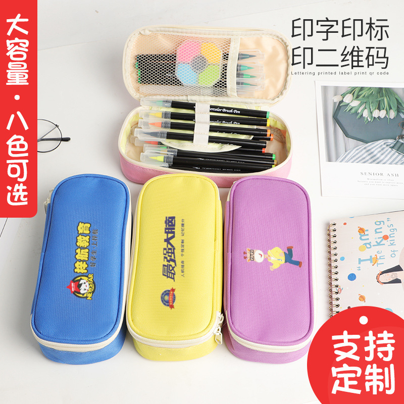 어린이를위한 한국어 연필 상자 만화 대용량 편지지 상자 초등학생 캔버스 연필 가방 더블 레이어 연필 가방 사용자 정의