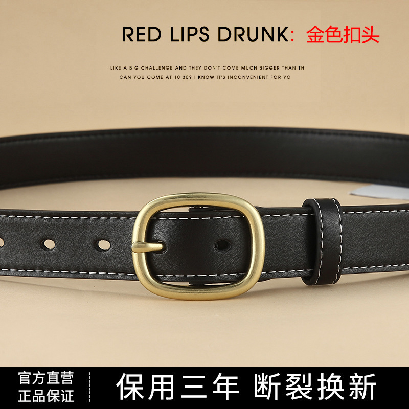 숙녀 벨트 in 홍콩 스타일 순수 소가죽 한국어 버전 벨트 숙녀 복고풍 핀 버클 여성의 머리카락 세대스토어 가기