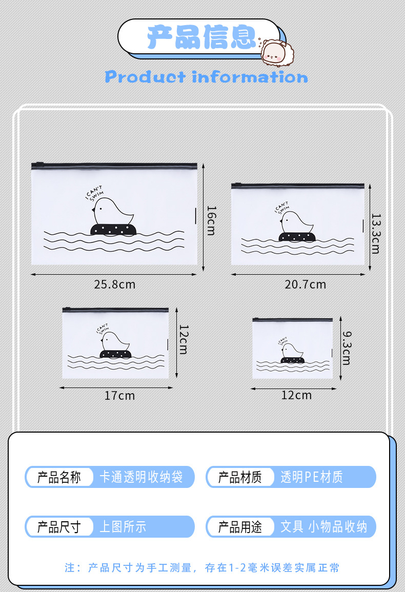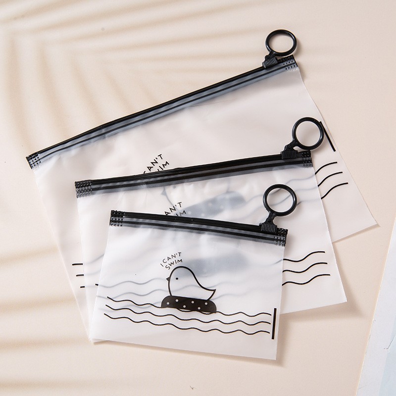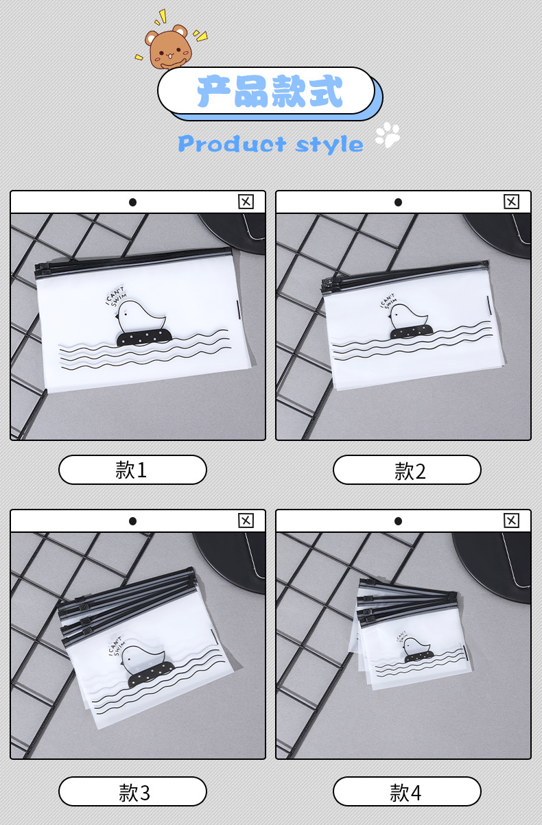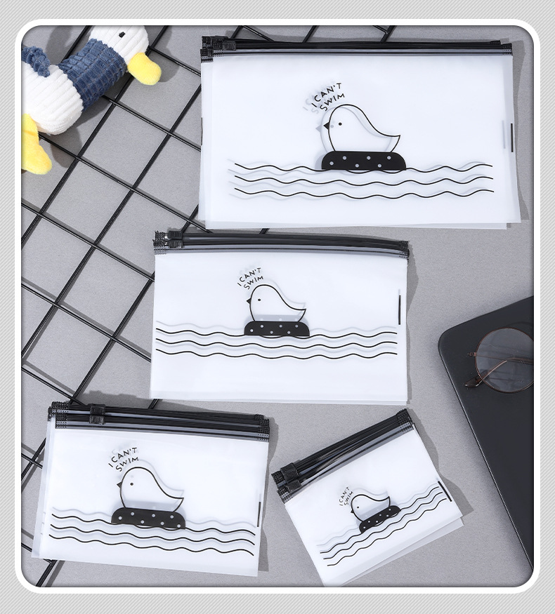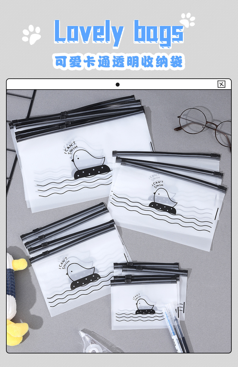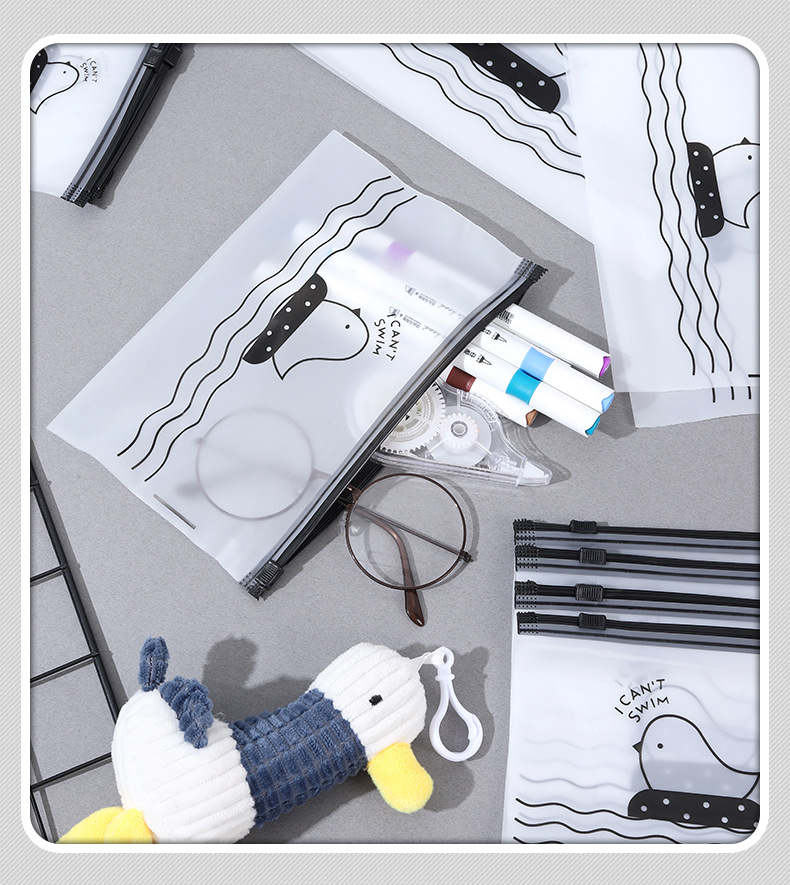 새로운 만화 치킨 반투명 젖빛 자체 밀봉 지퍼 백 펜 보석 가방 고무 밴드 가장자리 보관 비닐 가방