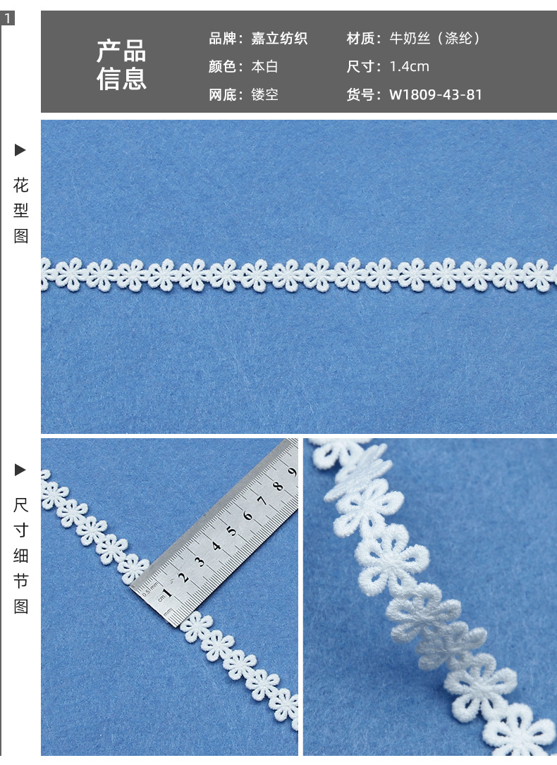 새로운 재고 화이트 레이스 자수 레이스 2cm 수용성 우유 실크 레이스 작은 바코드 아동 의류 액세서리스토어 가기