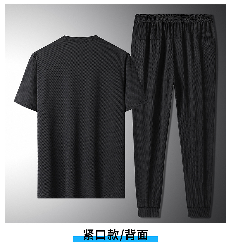 무료 배송 2021 여름 스포츠 레저 세트 남자의 느슨한 아이스 실크 메쉬 반팔 티셔츠 얇은 바지 7199