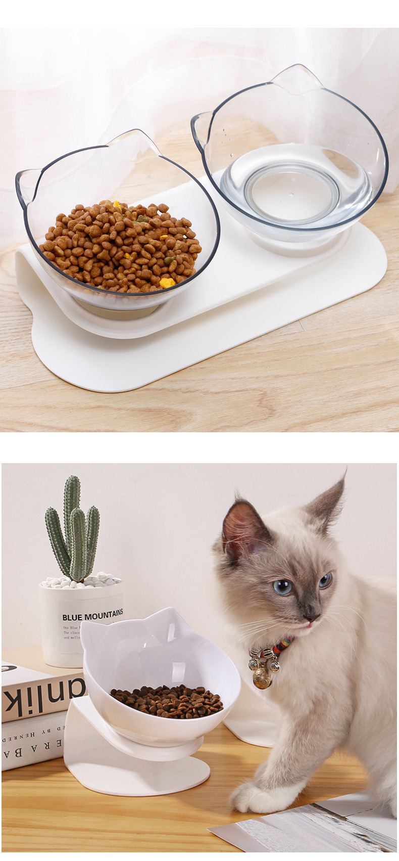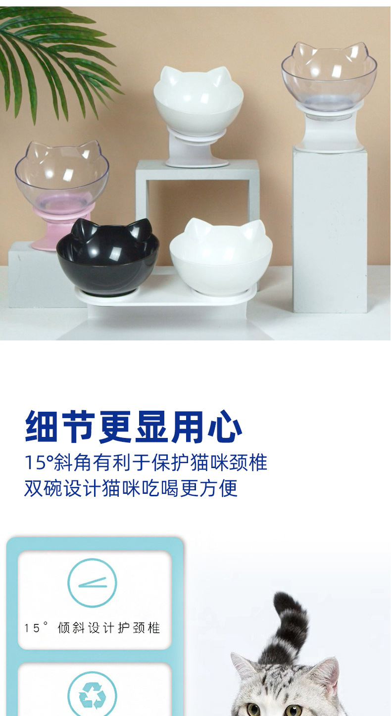 고양이 그릇 도매 개와 고양이 높은 다리 목 보호 애완 동물 그릇 미끄럼 방지 비스듬한 입 식수 먹이 고양이 그릇 먹이 물 그릇 이중 그릇