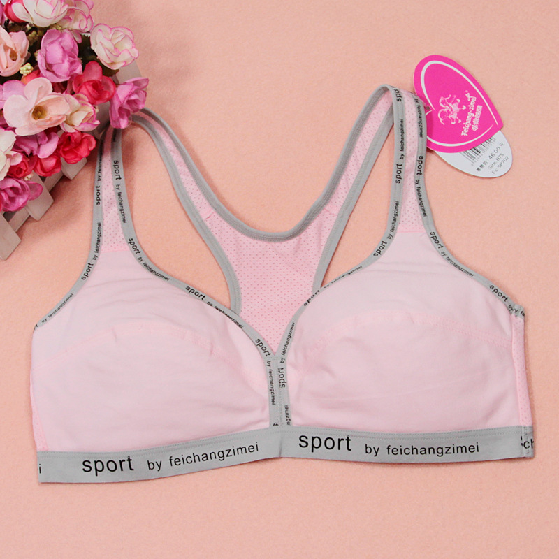 엄선된 얇은 컵 여아 속옷 개발 기간 고등학생 스포츠 와이어 프리 I 자형 단색 조끼 브라