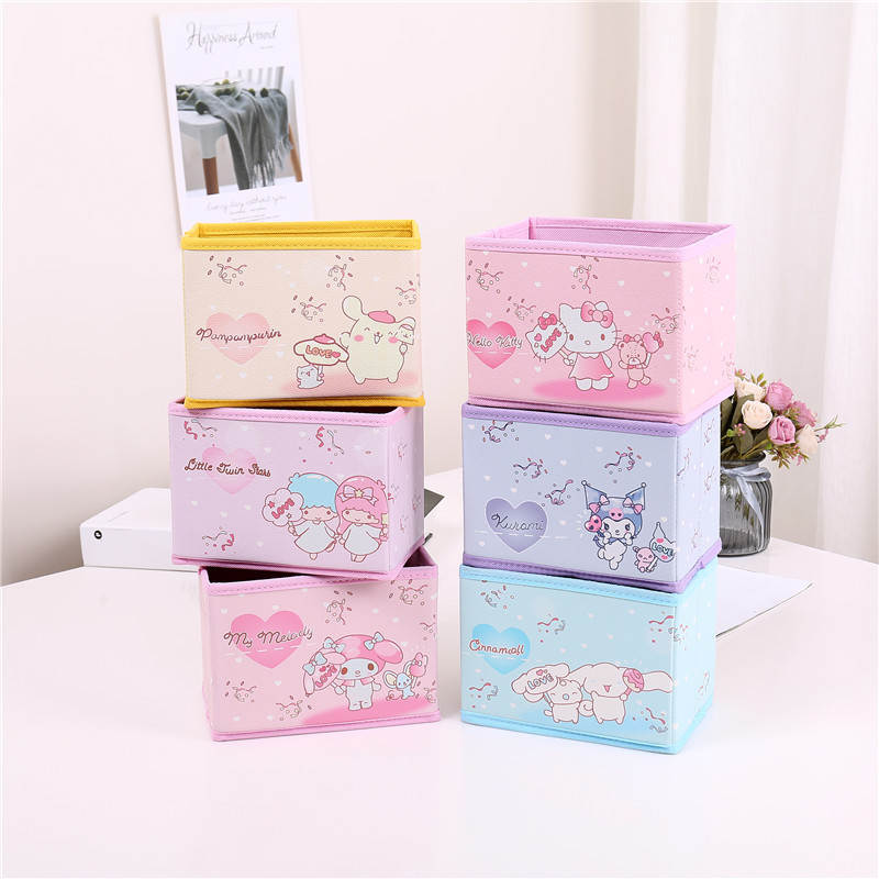 새로운 만화 PU 접이식 저장 데스크탑 저장 상자 화장품 문구 액세서리 정렬 저장 상자스토어 가기
