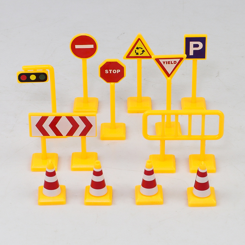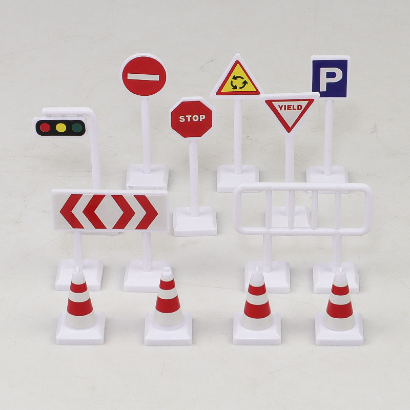 어린이 교통 안전 다양한 시뮬레이션 교통 신호 표지판 세트 모델 장면 과학 및 교육 장난감