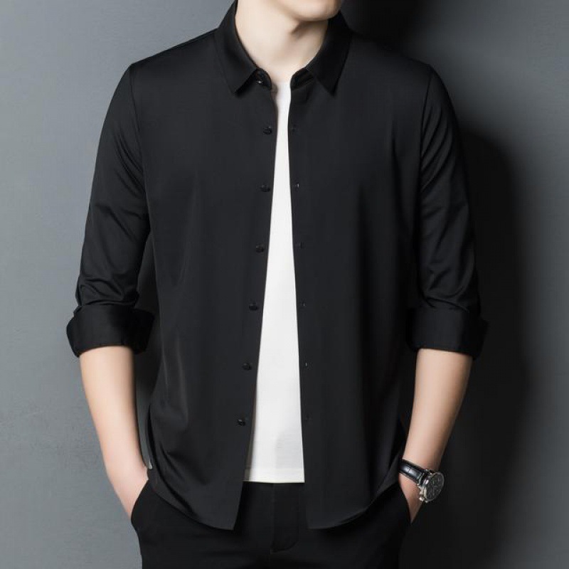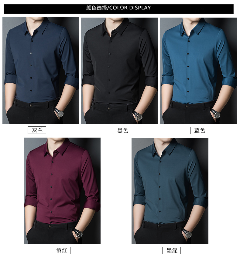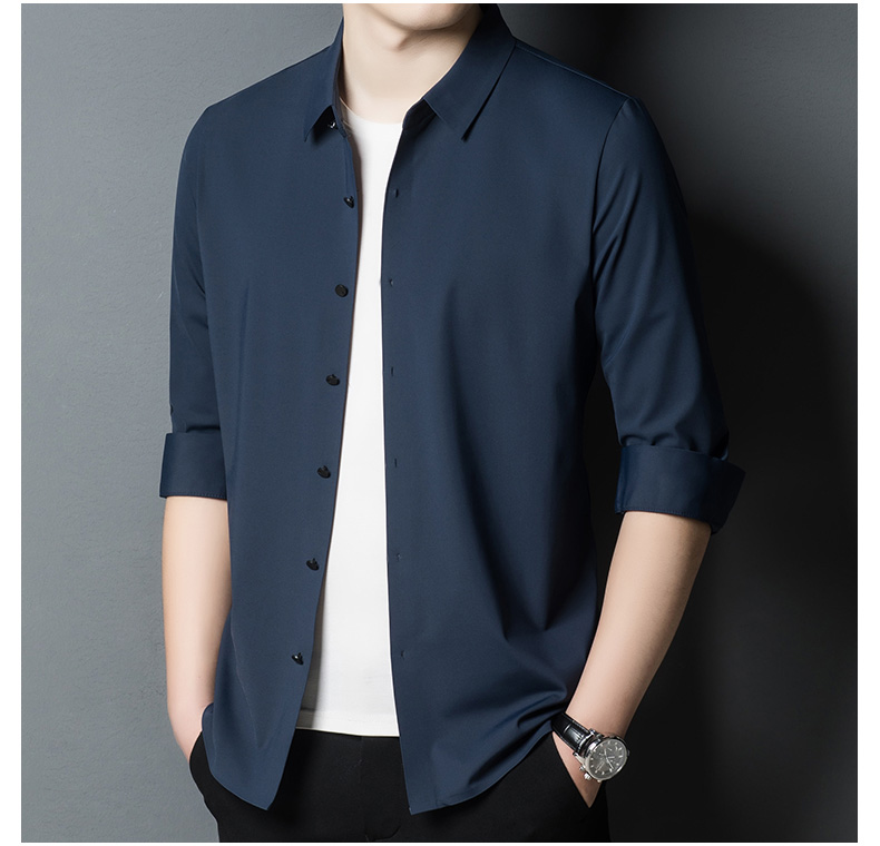 봄 새로운 패션 남성용 머서화 코튼 셔츠 단색 청년 및 중년 비즈니스 작업 셔츠스토어 가기