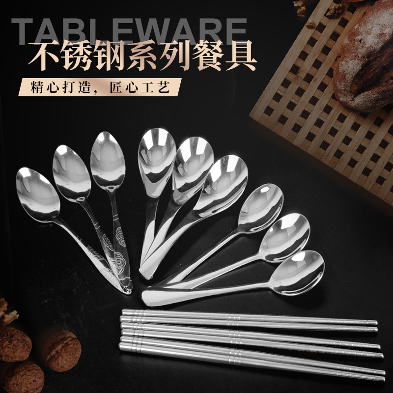 304 스테인레스 스틸 식기 두꺼운 스푼 호텔 중국 젓가락 작은 원형 수프 스푼 중국 믹싱 스푼 주방 식기