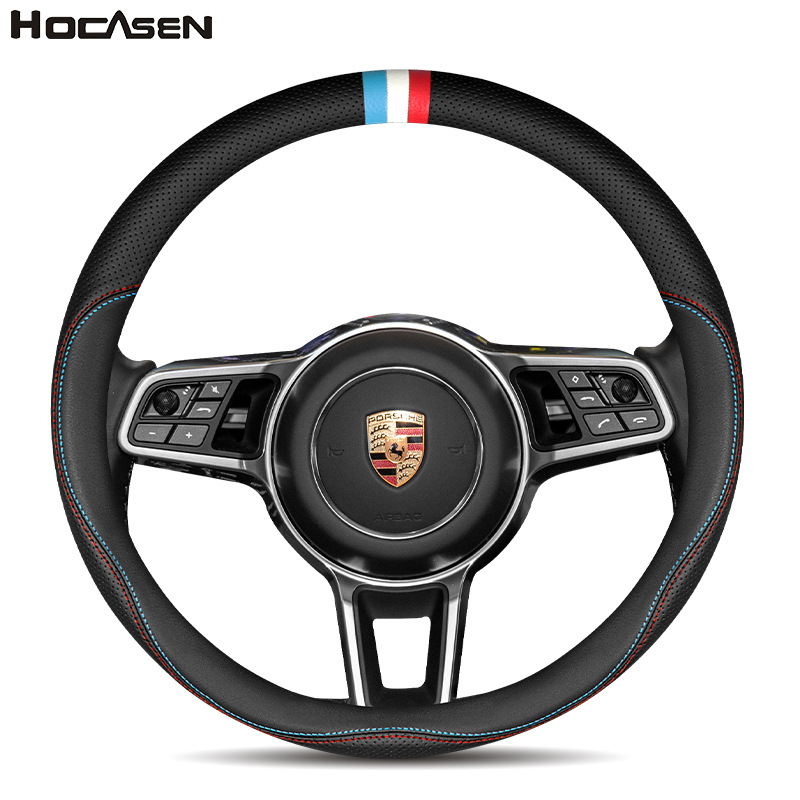 새로운 가죽 스티어링 휠 커버는 포르쉐 카이엔 마칸 스웨이드 자동차 핸들 커버에 적합합니다.스토어 가기