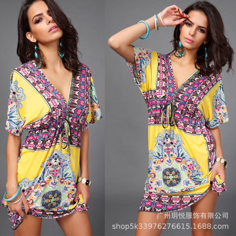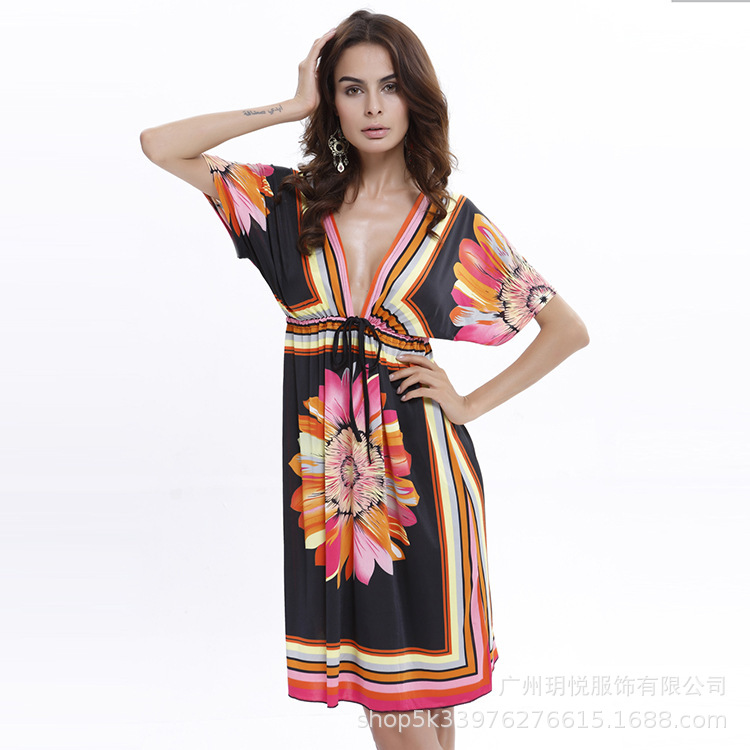 유럽과 미국 봄과 여름 V-넥 우유 실크 원피스 플러스 사이즈 비치 도매 아마존 AliExpress 크로스 보더 여성 의류 공급스토어 가기