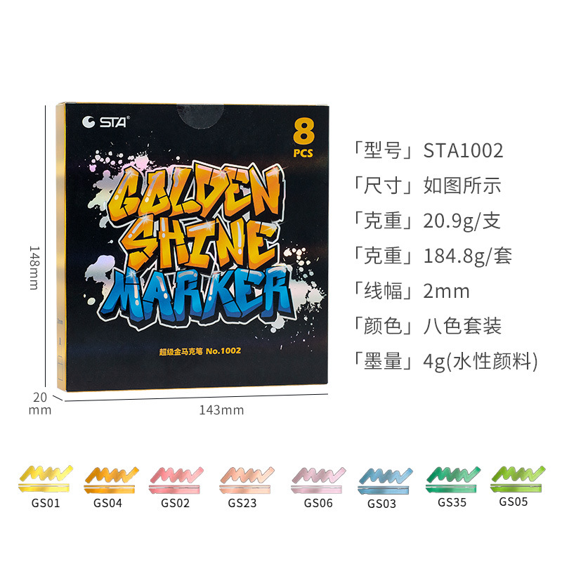 Stasta 1002 슈퍼 골드 아크릴 수성 마커 펜 금속 방수 페인트 펜 손으로 그린 하이 글로우 사인 펜