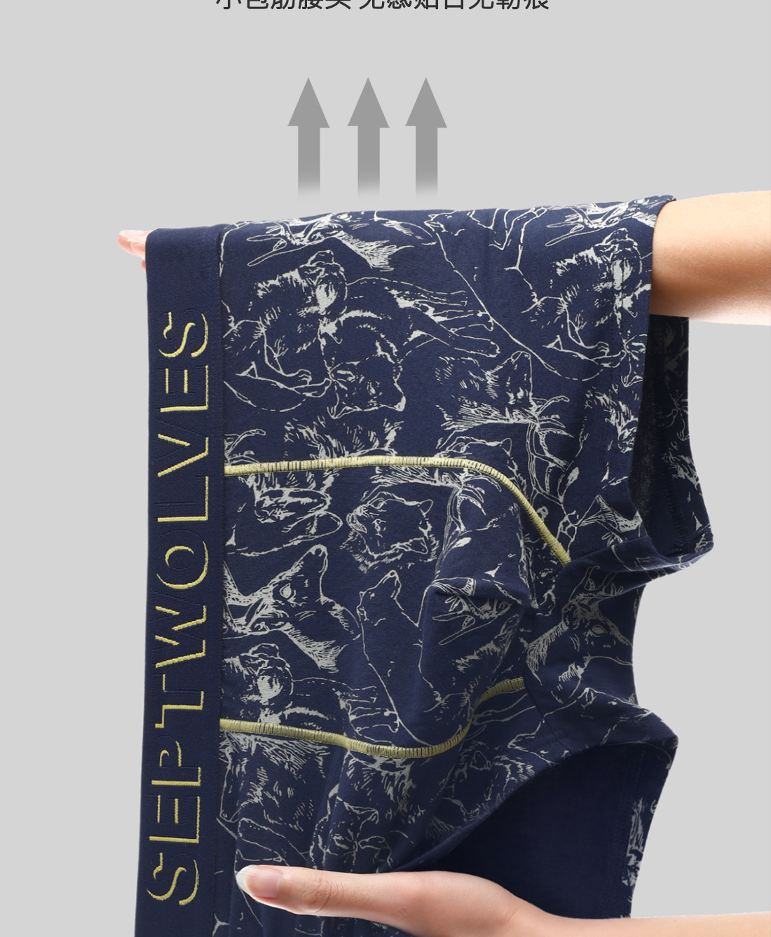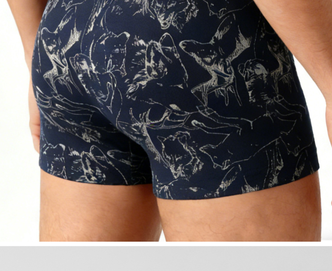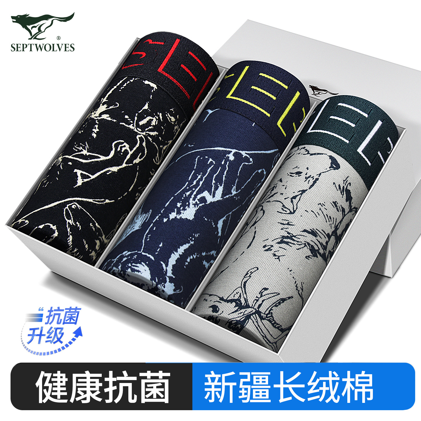 일곱 늑대 속옷 남자의 복서 면 암모니아 패션 인쇄 스트레치 통기성 청소년 복서 반바지 머리 3 팩