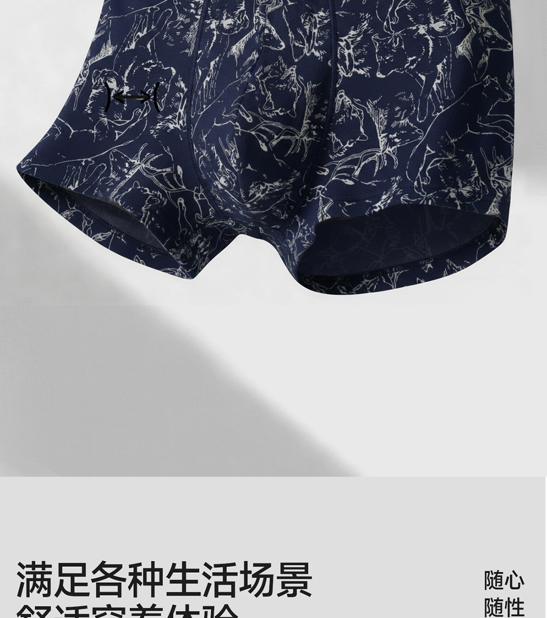 일곱 늑대 속옷 남자의 복서 면 암모니아 패션 인쇄 스트레치 통기성 청소년 복서 반바지 머리 3 팩스토어 가기