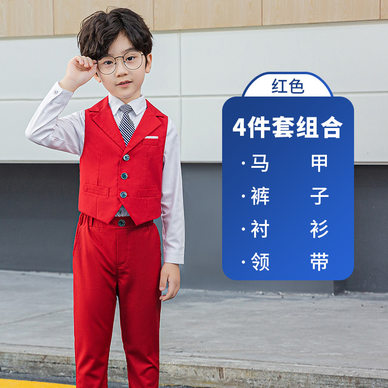 어린이 원피스 소년의 꽃 소년의 조끼 세트 피아노 연주 웨딩 세트 작은 호스트 봄과 가을