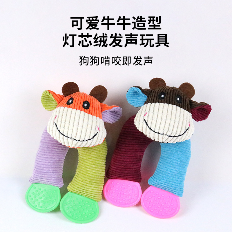 批发卡通小牛造型宠物TPR灯芯绒啃咬发声玩具洁齿磨牙宠物用品