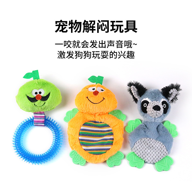 卡通造型宠物玩具小浣熊南瓜头绿毛怪发声啃咬毛绒玩具 一件代发
