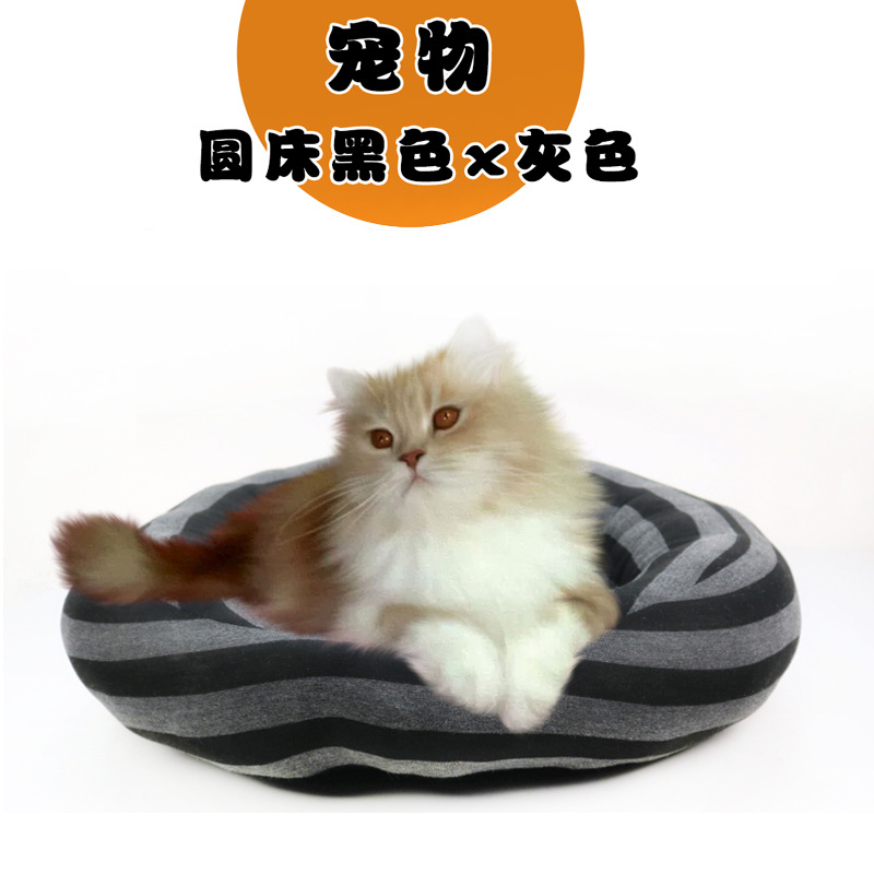 四季猫狗宠物窝黑灰条纹圆形床泰迪柔软舒适透气窝垫宠物用品批发