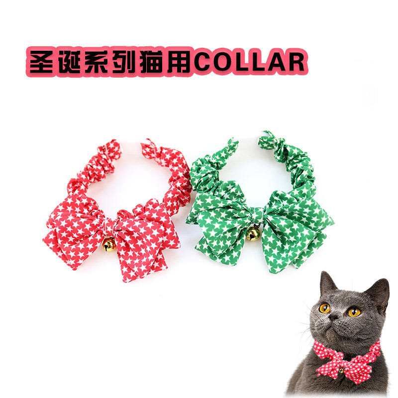批发圣诞节猫脖圈蝴蝶结猫花宠物项圈挂铃铛猫颈圈装饰节日挂饰