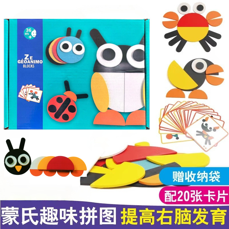 몬테소리 동물 지능 퍼즐 Tangram 어린이 소년 소녀 조기 교육 나무 교육 완구 선물 빌딩 블록스토어 가기