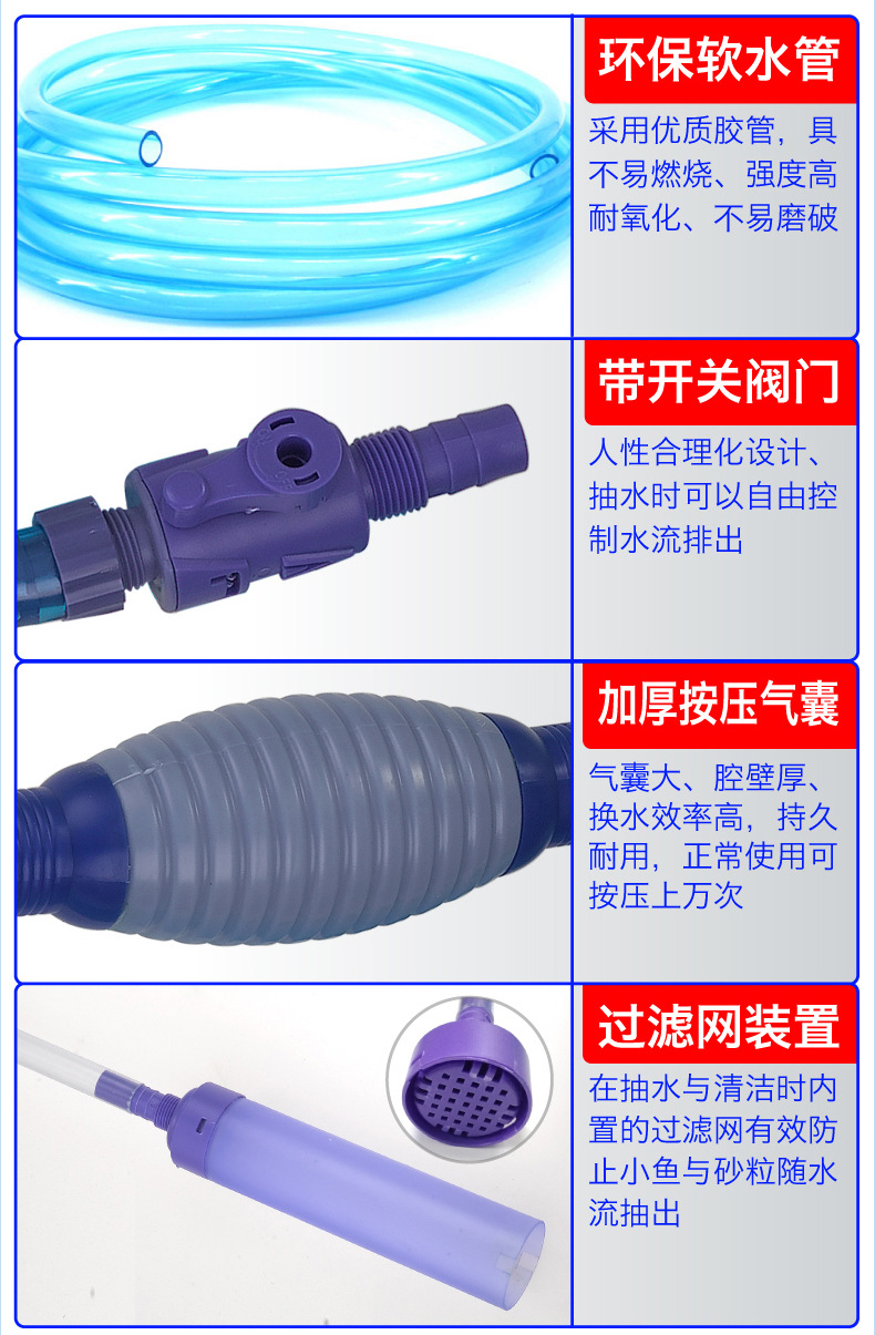 어항 물 교환기 사이펀 수동 청소 청소 도구 펌프 물 교환 파이프 펌프 모래 흡입 화장실스토어 가기