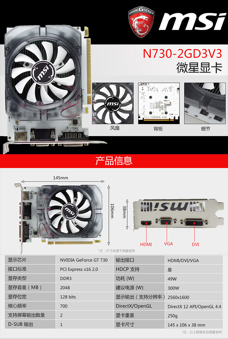 MSI Microstar N730-2GD3V3 GT730 짧은 작은 카드 2G 단일 디스플레이 데스크톱 컴퓨터 독립 그래픽 카드에 적용 가능스토어 가기