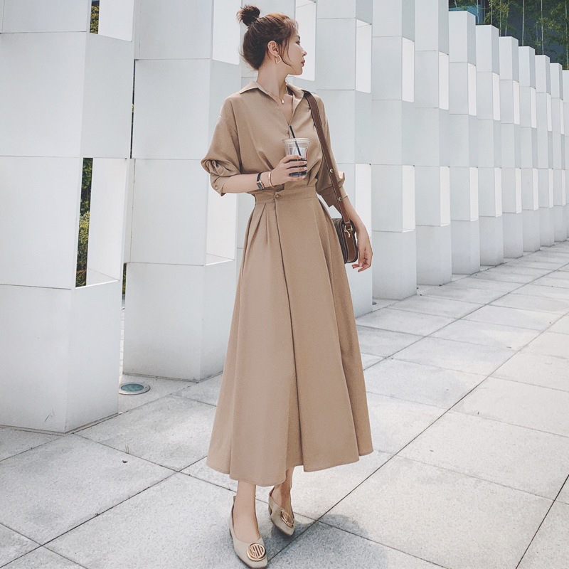 여성용 긴팔 드레스 2025 봄, 가을 새로운 스타일 프렌치 허리 슬리밍 기질 가볍고 성숙한 스타일의 여신 스타일 셔츠 롱 스커트