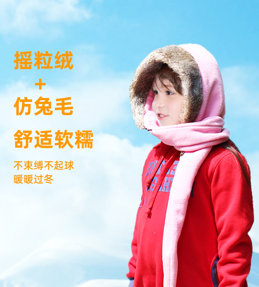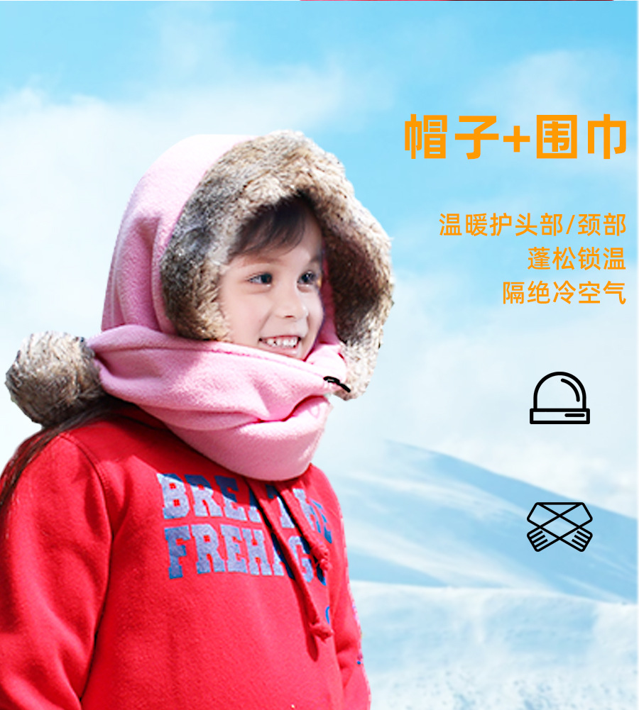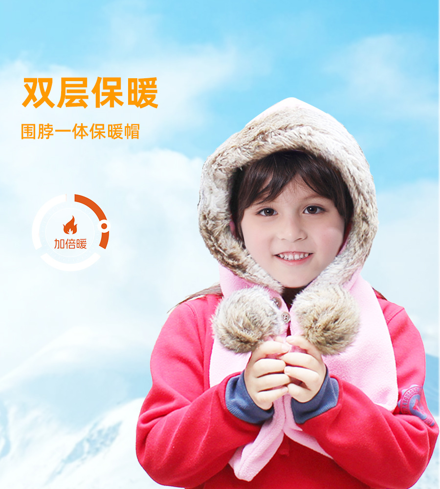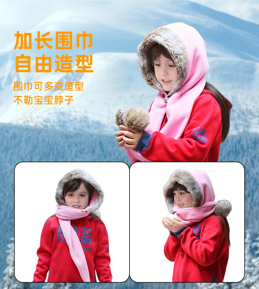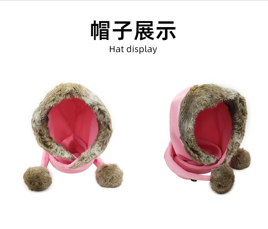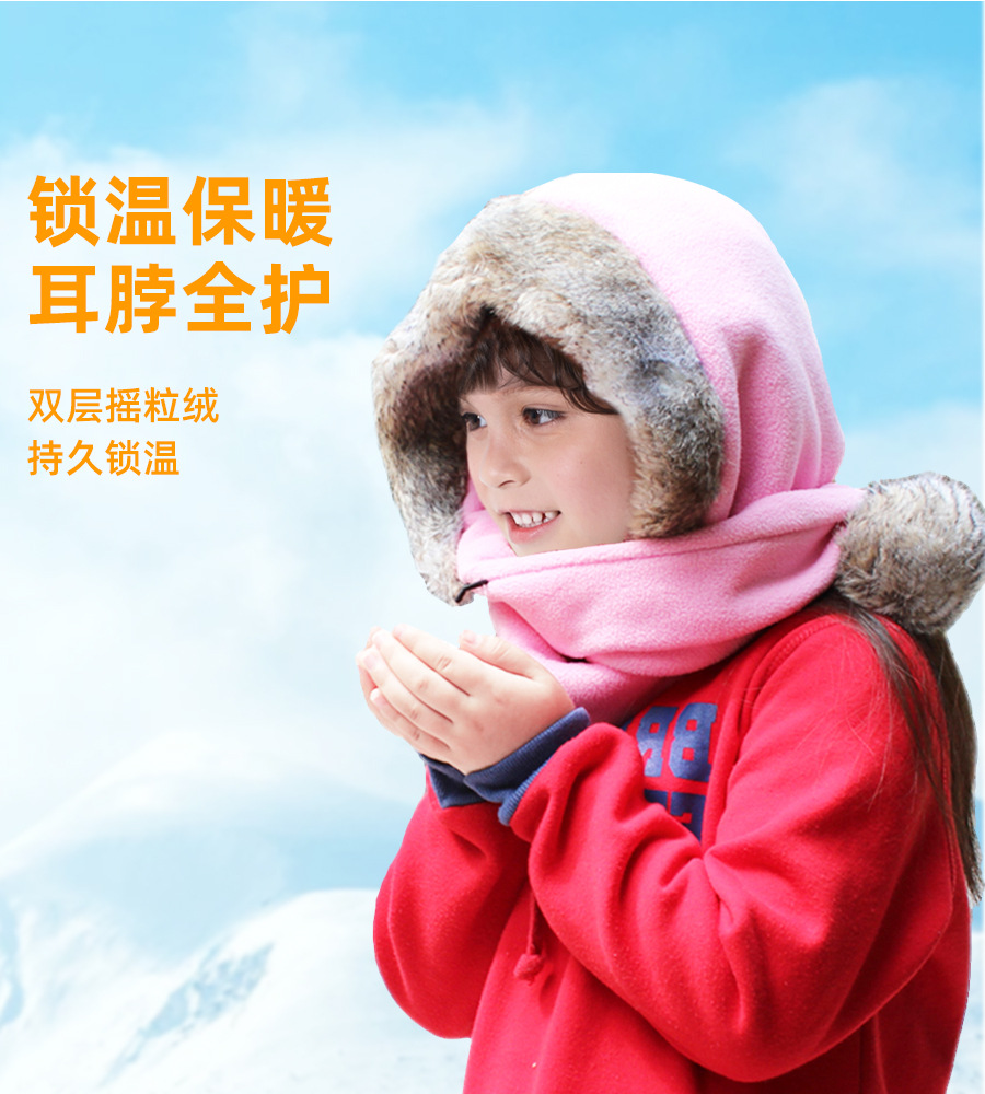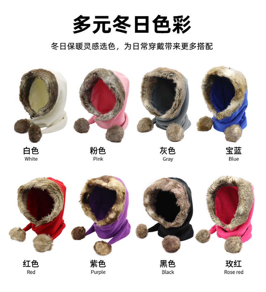 어린이 더블 볼 스카프 모자 폴라 양털 두꺼운 따뜻한 모자 스카프 원피스 큰 울 칼라 겨울 모자 작은 빨간 승마 후드 사용자 정의