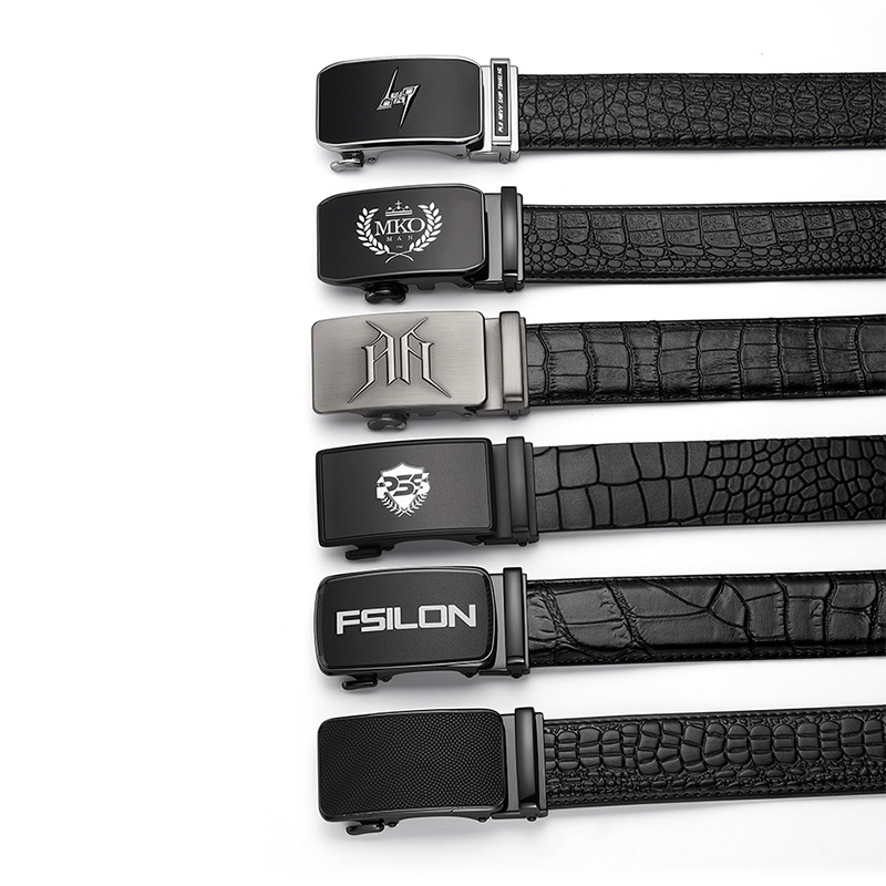 맞춤형 벨트 남성용 정품 가죽 자동 버클 소 가죽 벨트 컬러 인쇄 로고 비즈니스 선물 남성용 래칫 탑 레이어 벨트
