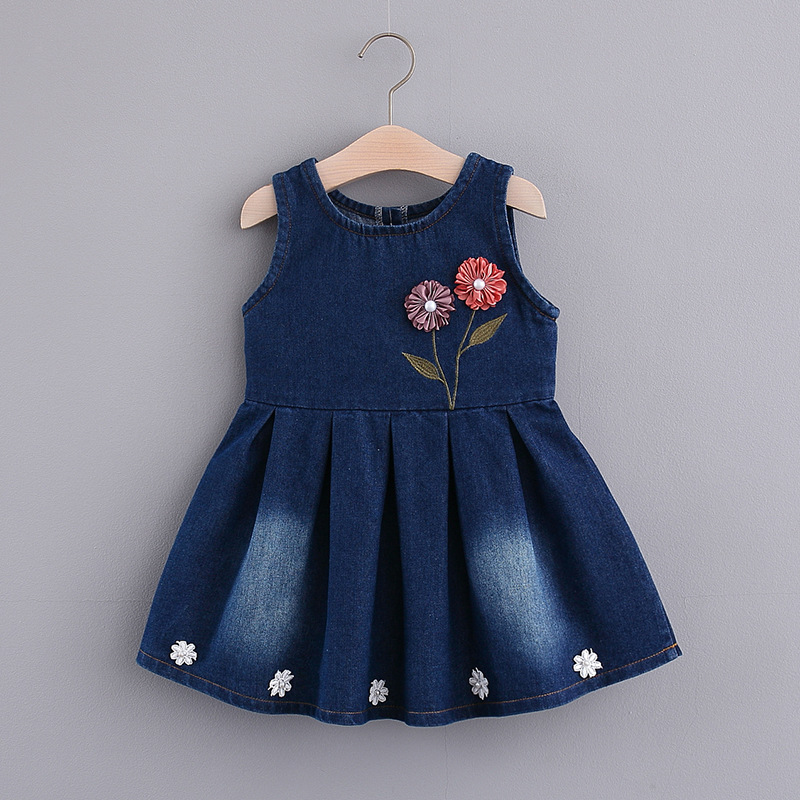 2023 대외 무역 아동복 아동 여름 원피스 새로운 소녀 데님 꽃 조끼 스커트 크로스 보더 데님 스커트스토어 가기