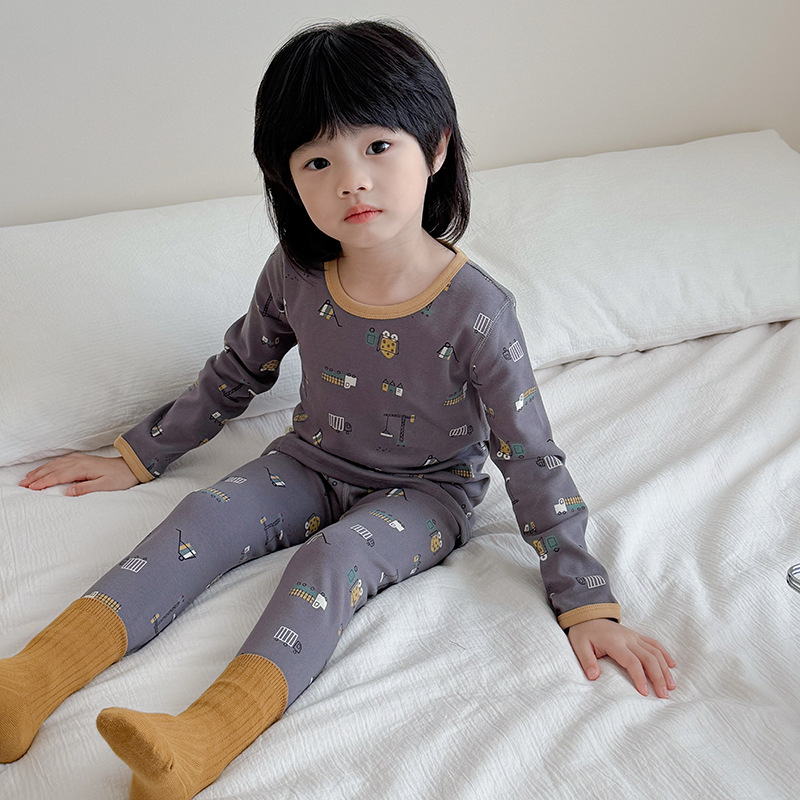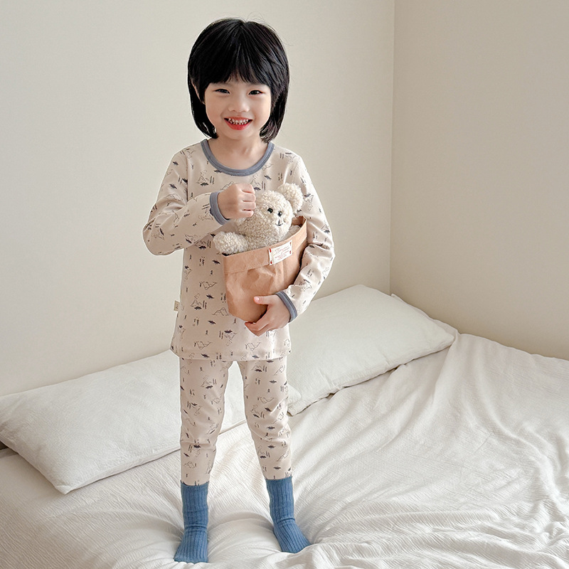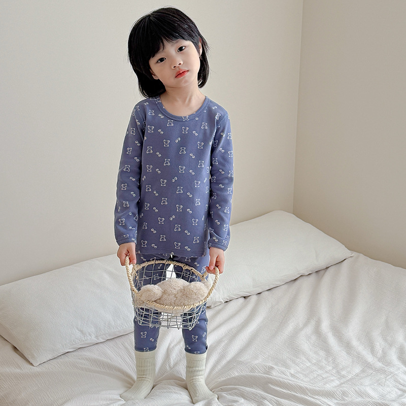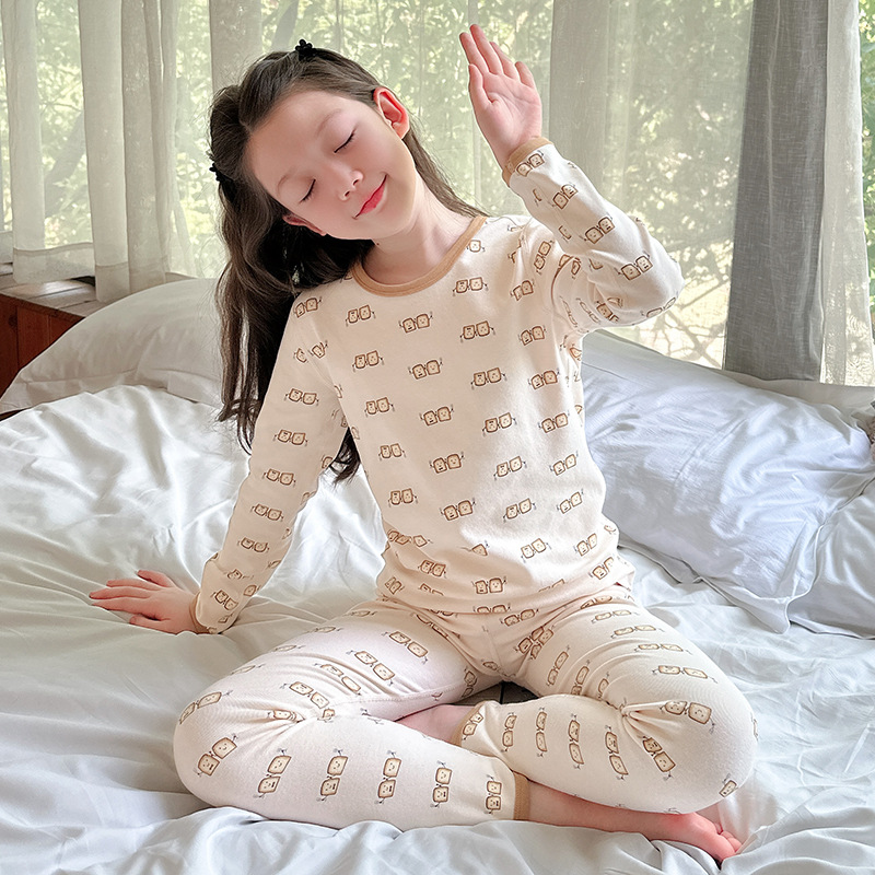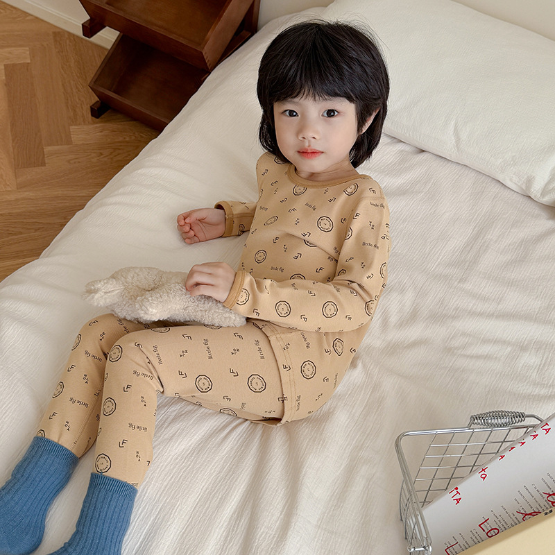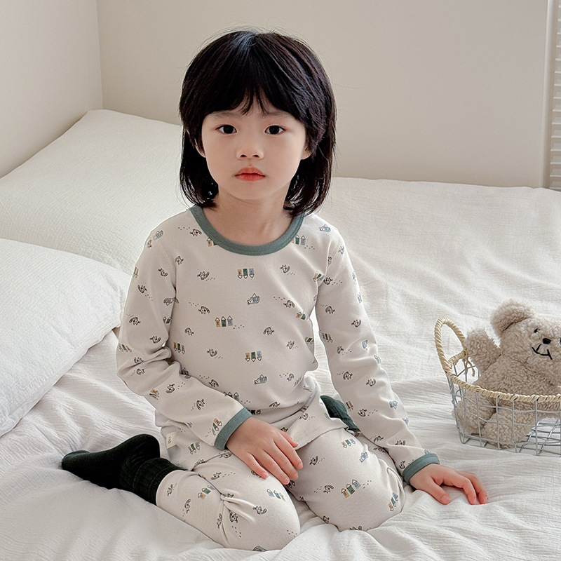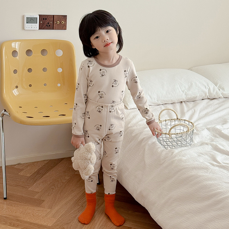 2025 가을 겨울 아동용 가을 옷 및 긴 바지, 본리스 속옷, 울 스트레치 홈웨어 세트, 아기 만화 잠옷스토어 가기