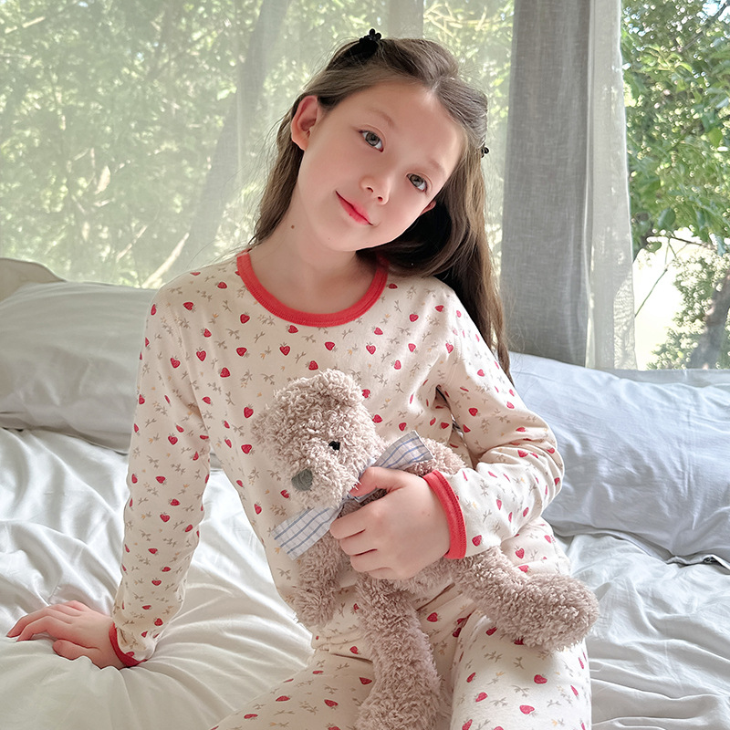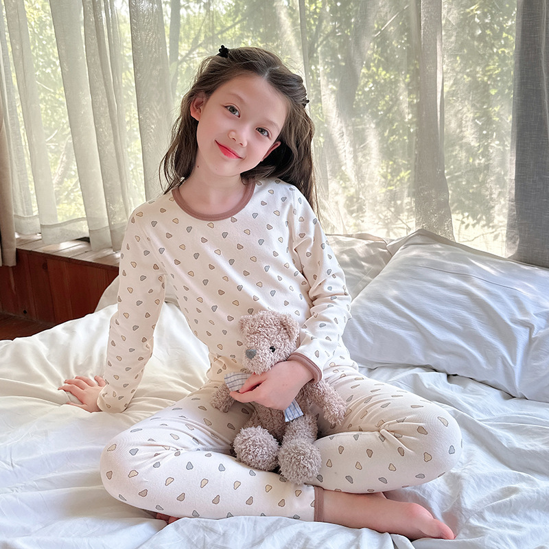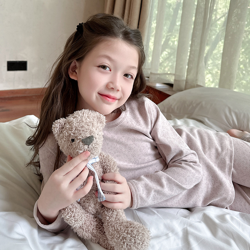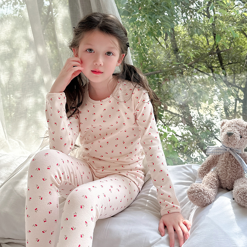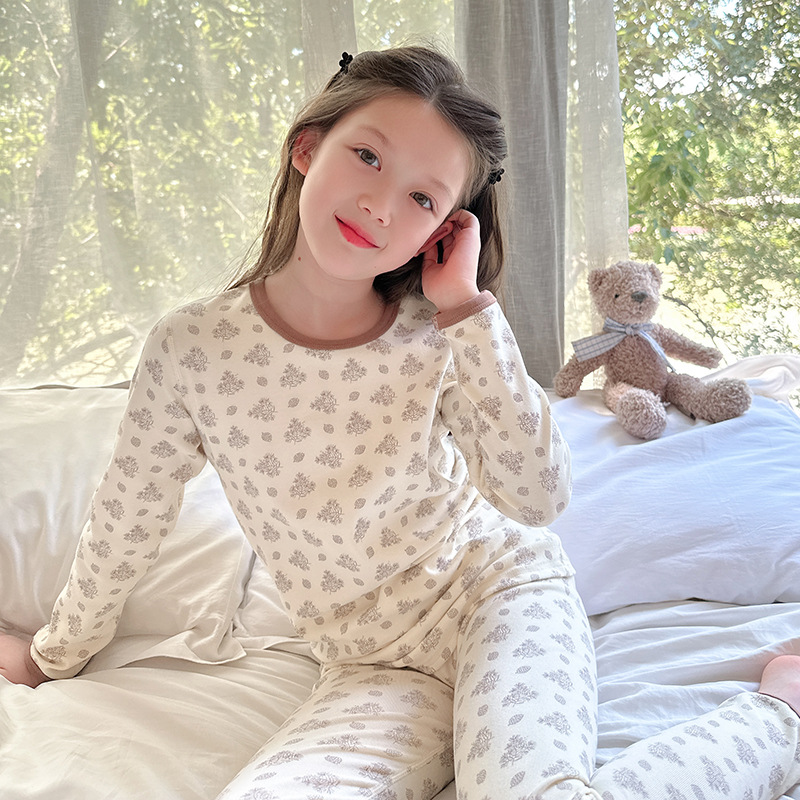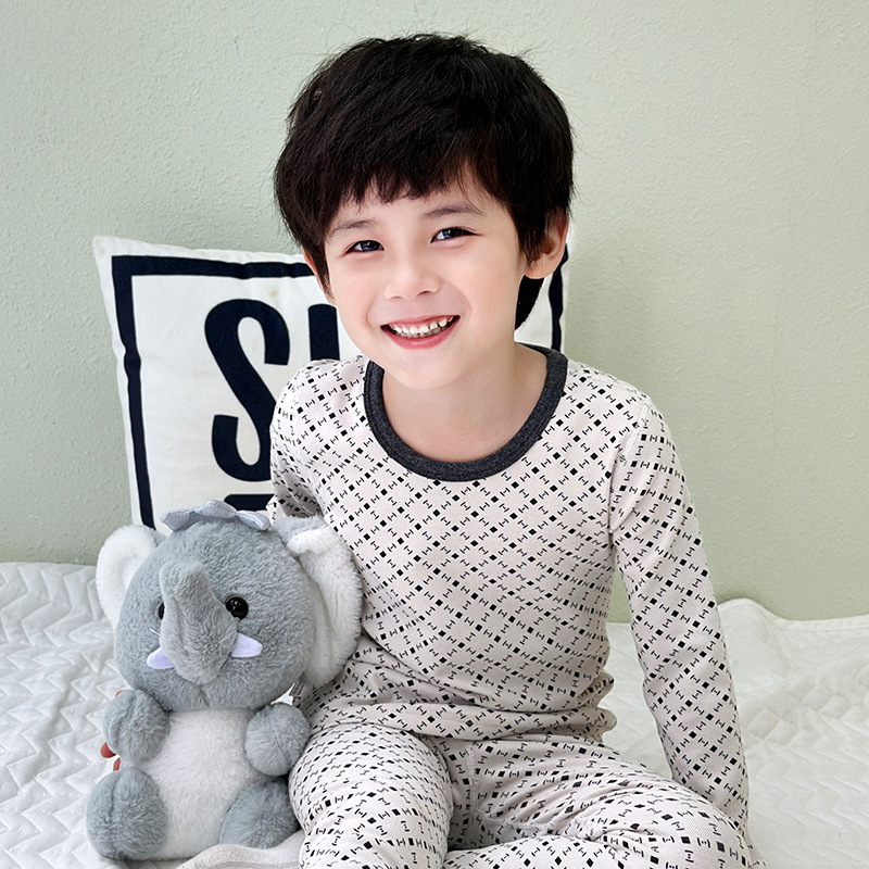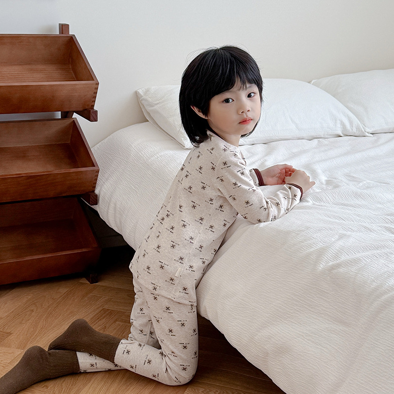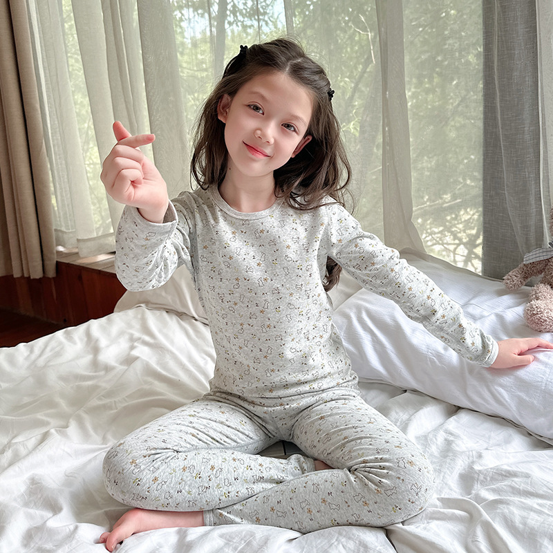 2025 가을 겨울 아동용 가을 옷 및 긴 바지, 본리스 속옷, 울 스트레치 홈웨어 세트, 아기 만화 잠옷스토어 가기