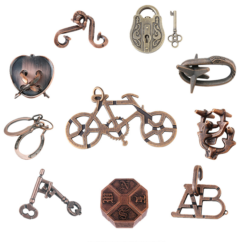 아연 합금 지능 잠금 해제 세트 9 체인 지능 버클 콩 밍 잠금 떨림 매직 퍼즐 골드