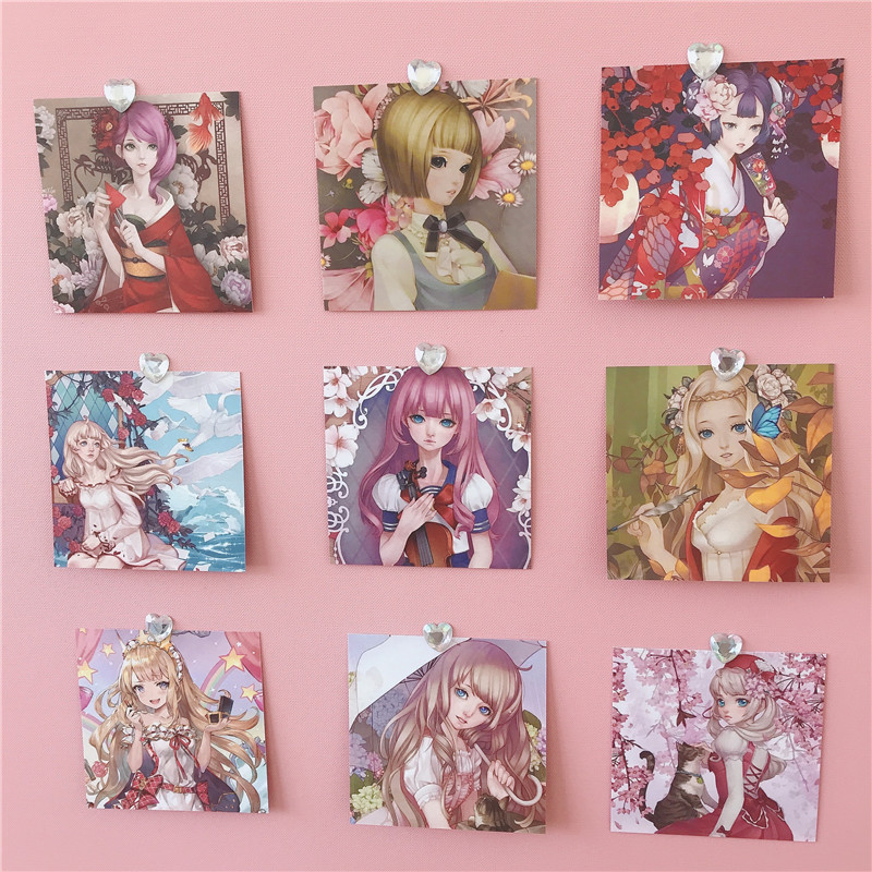 만화 소녀 심장 애니메이션 팬 카드 장식 벽 스티커 스타 필름 책갈피 재료 침실 장식 카드스토어 가기