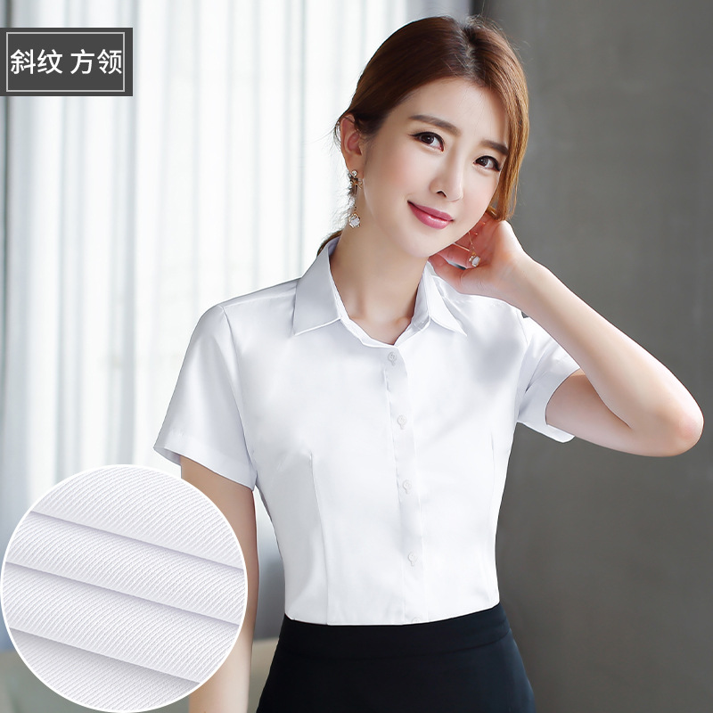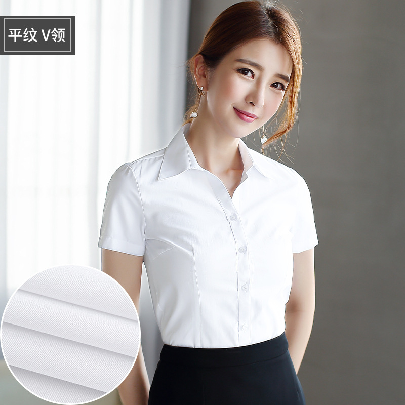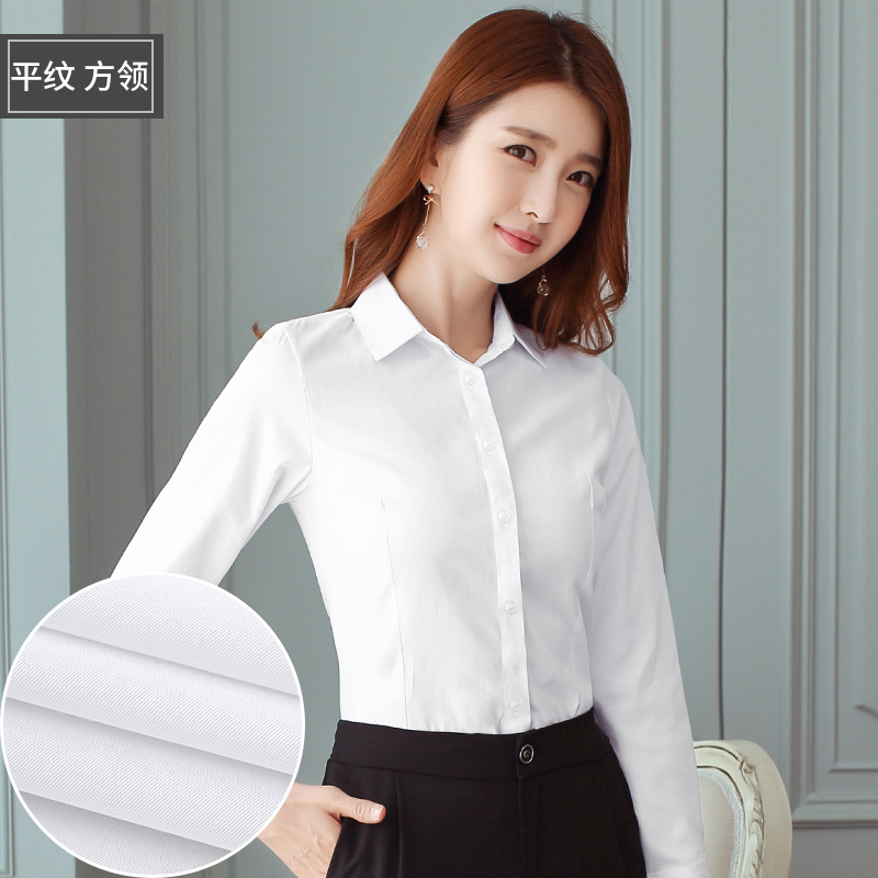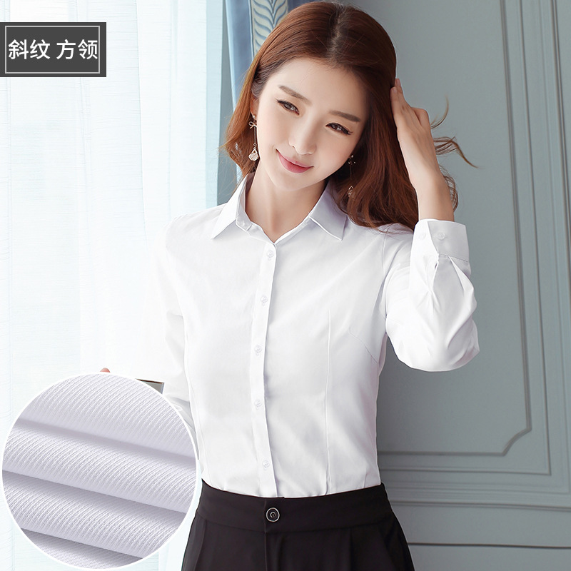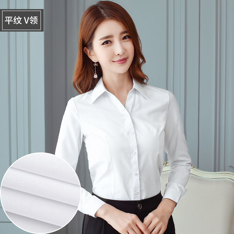 봄과 가을 흰색 셔츠 여성용 긴팔 한국 스타일 셔츠 원피스 전문 세트 작업복 학생 기질 반팔 브이넥 플러스 사이즈스토어 가기