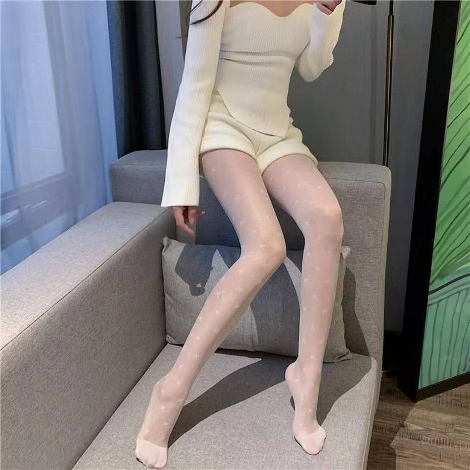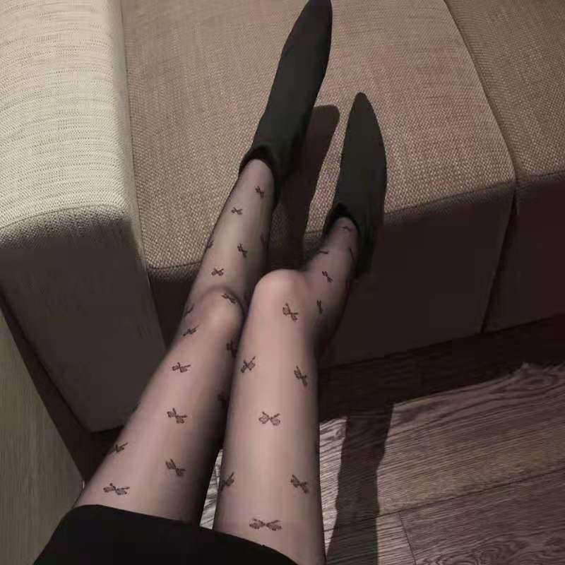 인터넷 유명인 섹시 스타킹 여성용 봄 가을 신상 블랙 화이트 자카드 초박형 리본 바디스타킹스토어 가기