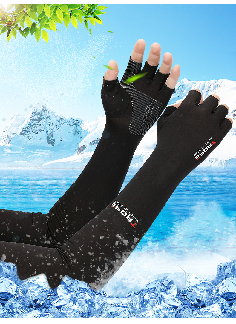 여름 남자와 여자의 선 스크린 얼음 소매 팔 보호 장갑 중간 및 긴 운전 통기성 자외선 보호 스포츠 승마 아이스 실크 소매
