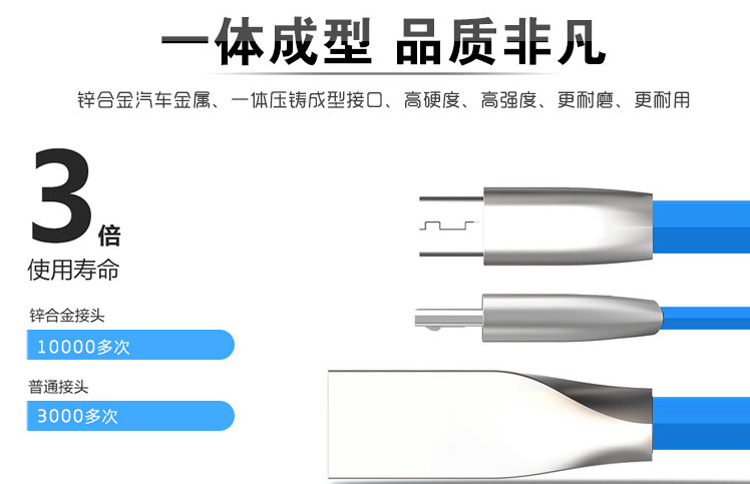 스마트 USB 아연 합금 데이터 라인 소프트 실리콘 고속 충전 3A 충전 라인 1 미터 안드로이드 데이터 라인 제조 업체스토어 가기
