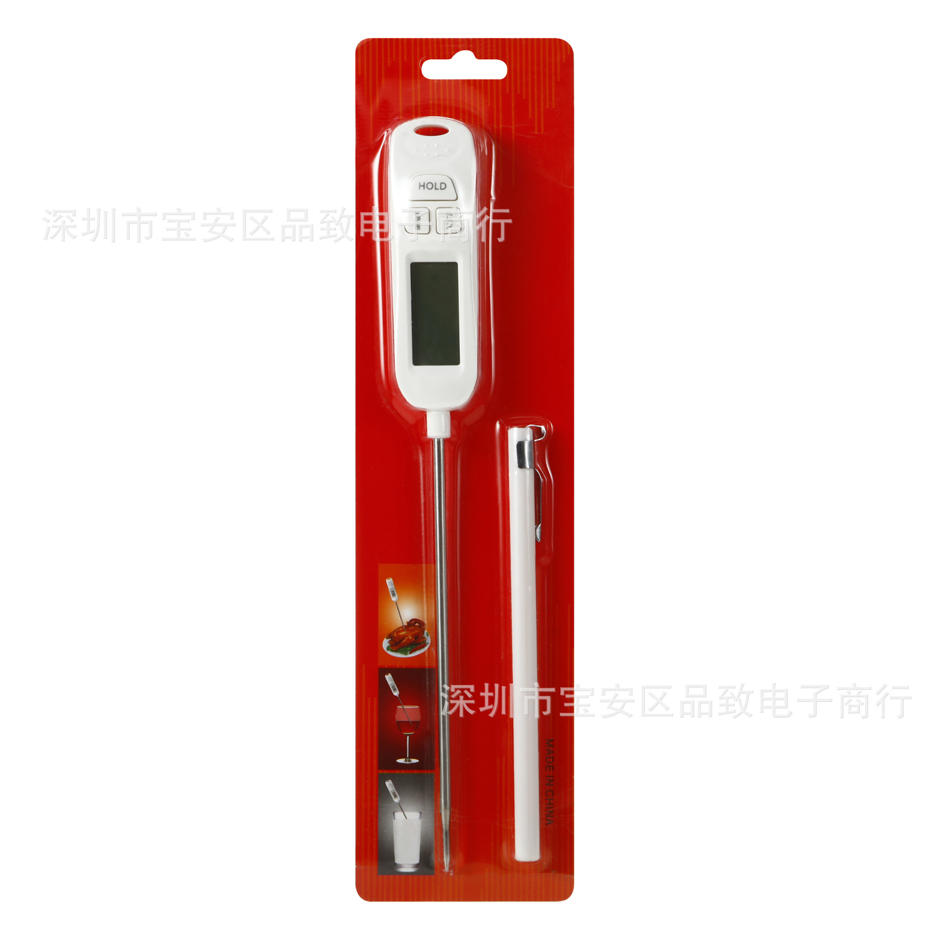 产品清单:食品温度计*1、笔管*1、AG13纽扣电池*1、说明书*1