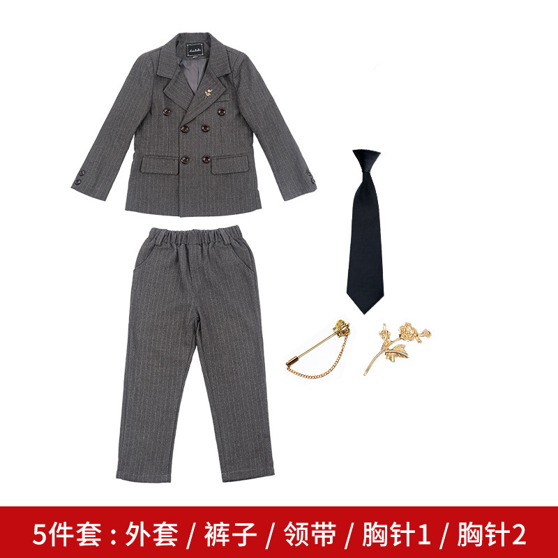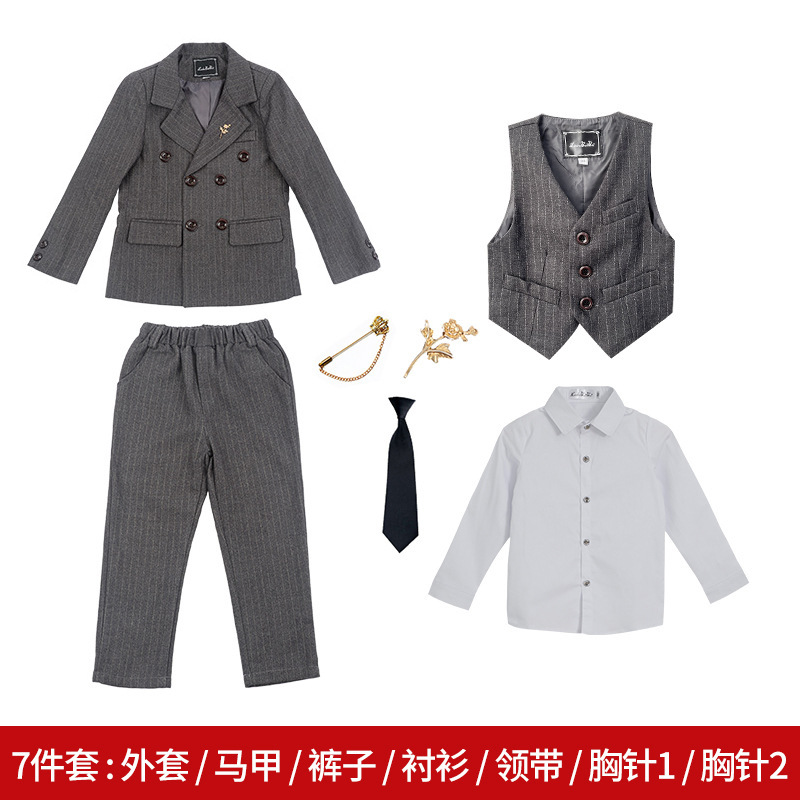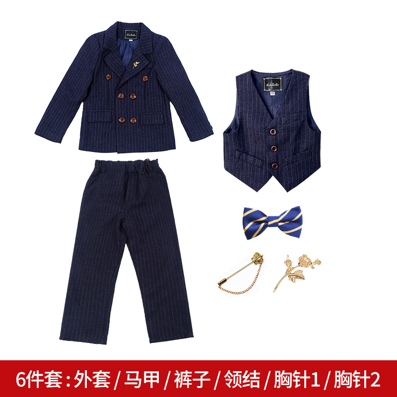 영국 스타일의 아동 의류 더블 브레스트 어린이 세트 3 피스 봄과 가을 남성과 어린이의 줄무늬 양복 조끼 세트 머리카락 세대스토어 가기