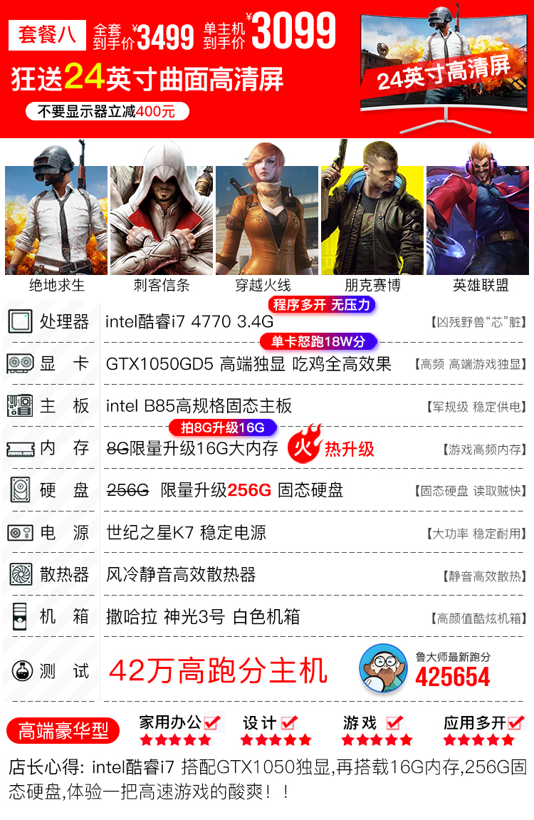 I7 데스크탑 컴퓨터 메인프레임 풀 세트 e 스포츠 멀티 오픈 인터넷 카페 게임 유형 조립 DIY 사무실 높은 공냉식 완전한 기계스토어 가기