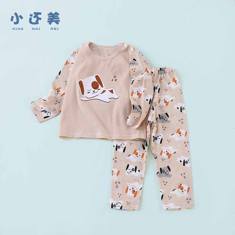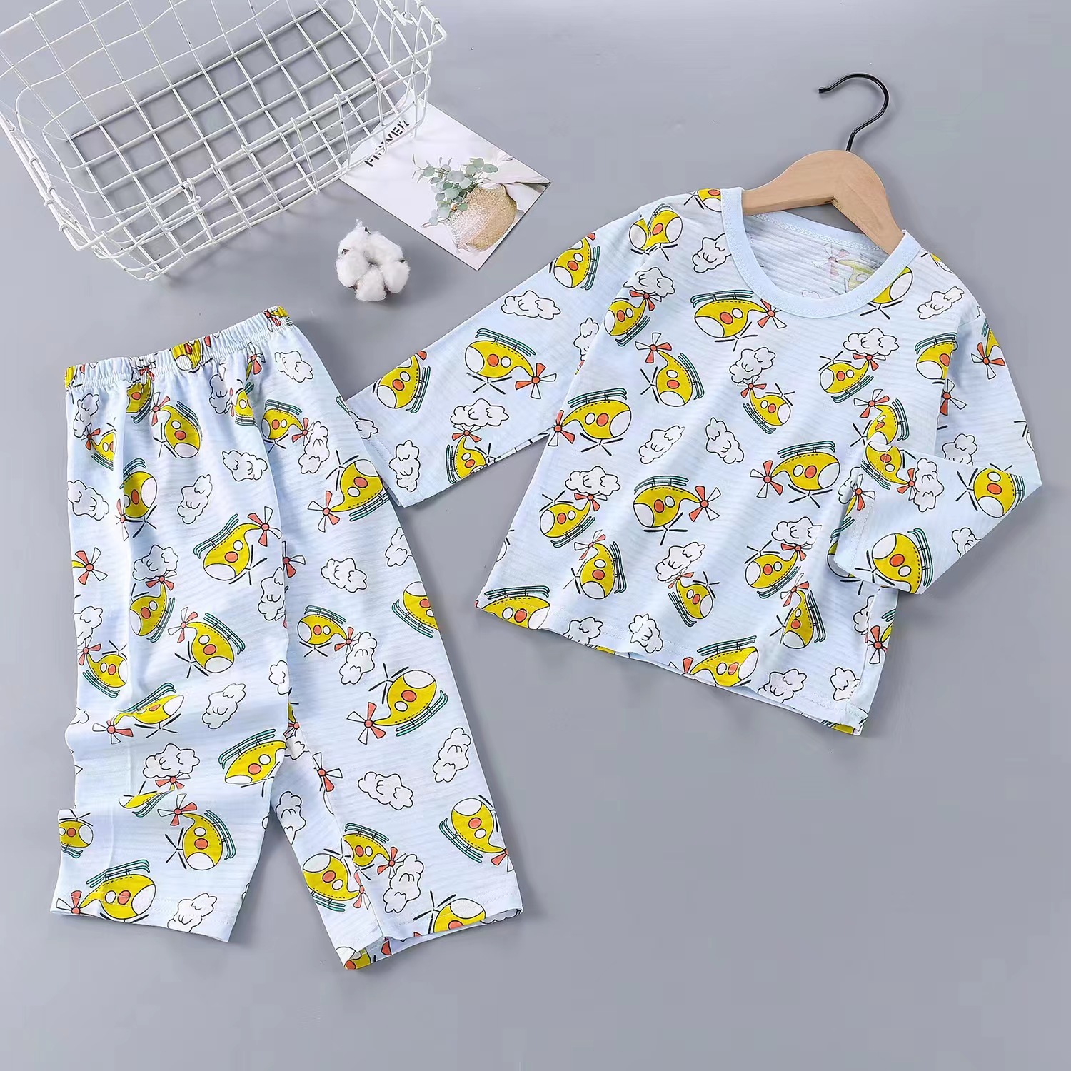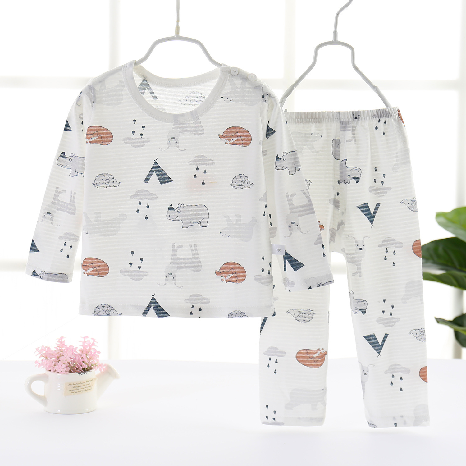 2025 새로운 어린이 여름 가정 의류 세트 통기성 면화 긴팔 에어컨 의류 한국어 버전 남성과 여성 아기 얇은 섹션스토어 가기