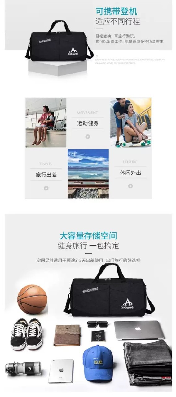 원 숄더 휴대용 피트니스 가방 여행 가방 스포츠 가방 대용량 수하물 가방 여행 실린더 가방 인쇄 로고