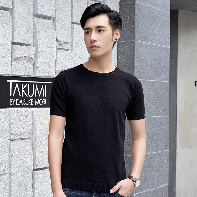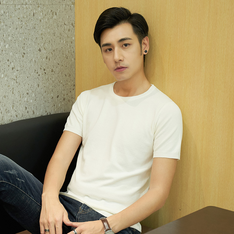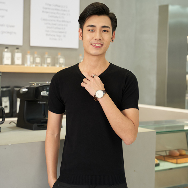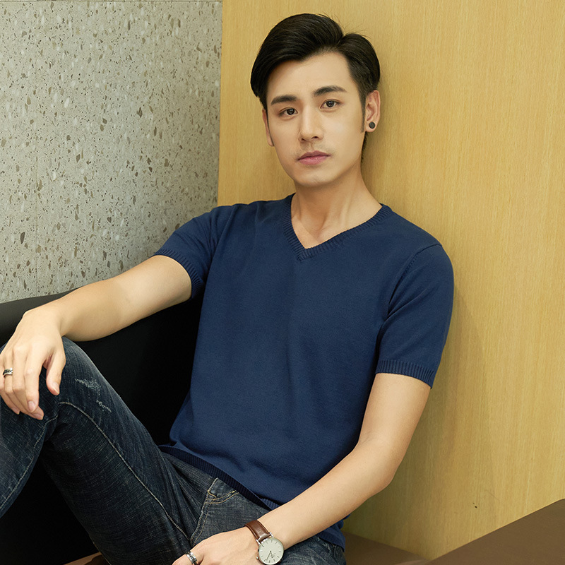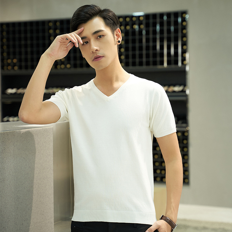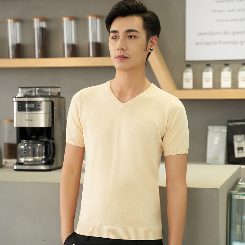 반팔 스웨터 남성용 V-넥 심플 캐주얼 여름 반팔 스웨터 젊은 남성용 라운드 넥 슬림핏 얇은 베이스 티셔츠