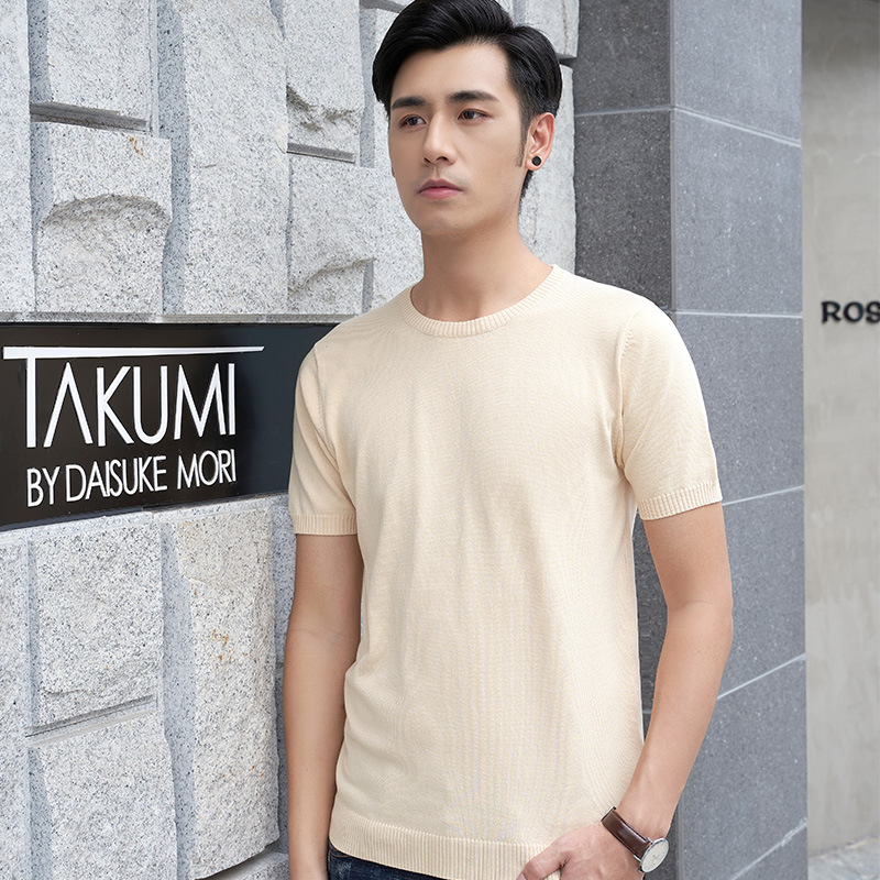반팔 스웨터 남성용 V-넥 심플 캐주얼 여름 반팔 스웨터 젊은 남성용 라운드 넥 슬림핏 얇은 베이스 티셔츠스토어 가기