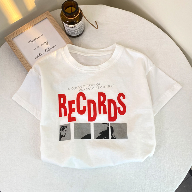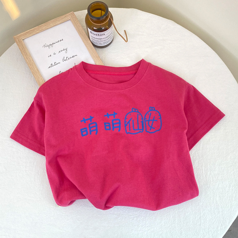 2023 어린이 티셔츠 반팔 여름 얇은 면 소년과 소녀 반팔 아기 느슨한 한국식 만화 인쇄 탑 반팔
