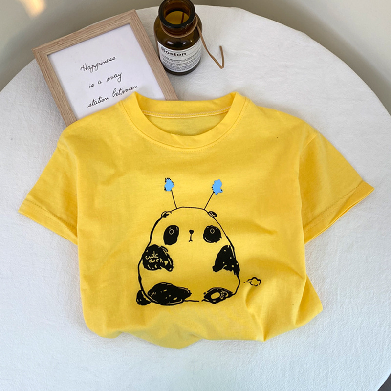 2023 어린이 티셔츠 반팔 여름 얇은 면 소년과 소녀 반팔 아기 느슨한 한국식 만화 인쇄 탑 반팔스토어 가기