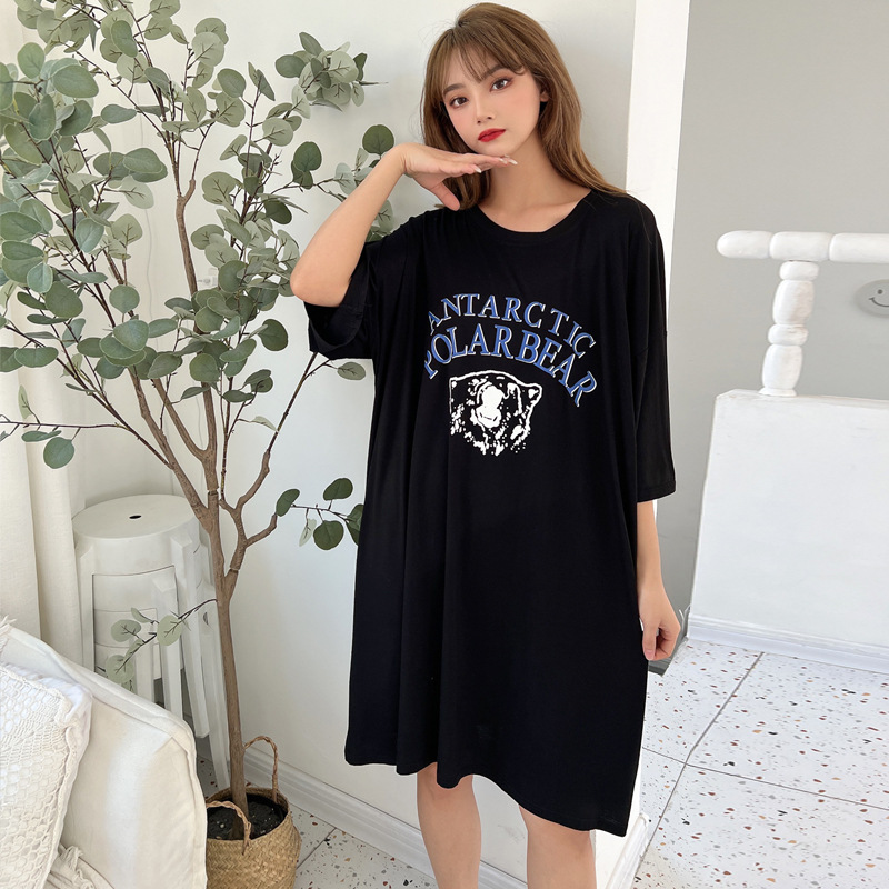 임신 한 여자의 원피스 여름 출산 여름 원피스 유행 인쇄 느슨한 플러스 사이즈 탑 반팔 중간 길이 티셔츠 스커트스토어 가기