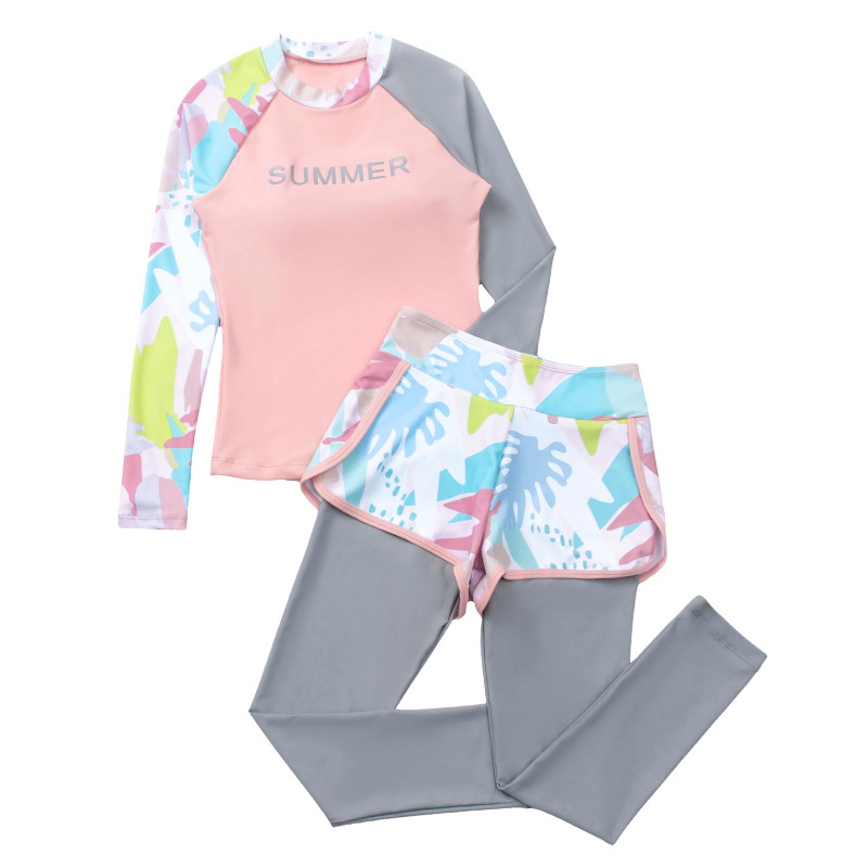 2021 새로운 여아 수영복 큰 아이들 10-15 세 긴 소매 바지 자외선 차단제 다이빙 온천 여성스토어 가기