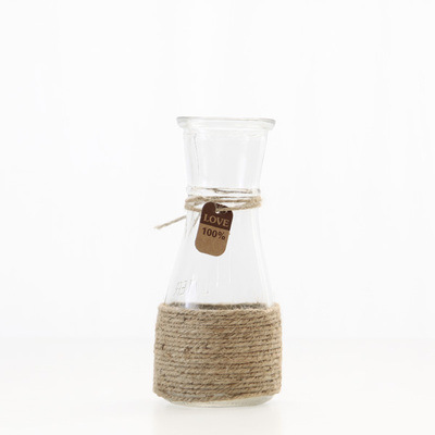 아메리칸 스타일 컨트리 빈티지 대마 로프 투명 유리 꽃병 홈 장식 수경 꽃병 사무실 녹색 장미 꽃병