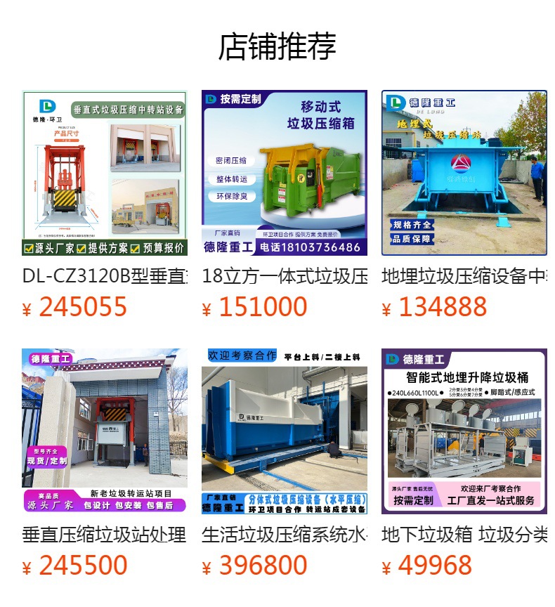 垂直式垃圾压缩中转设备整体造型美观、协调,构运动灵活、平稳可靠,维修保养简单、方便。