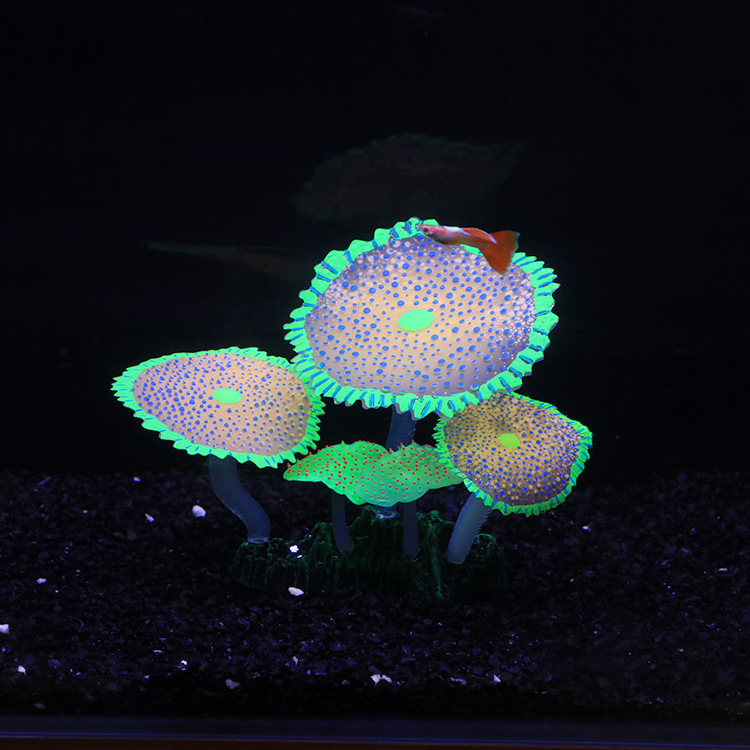 • 跨境鱼缸布景装饰硅胶软体荧光海蘑菇珊瑚塑料假水草 仿真水草